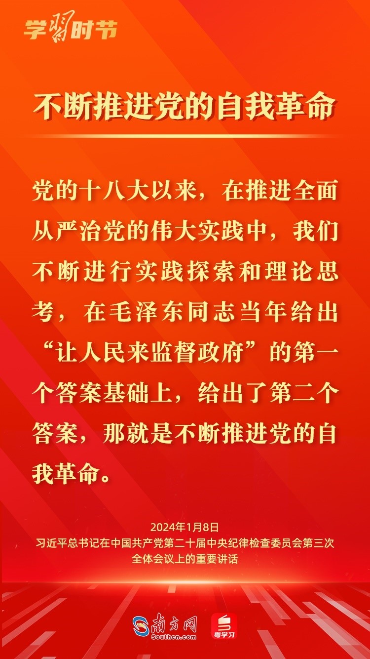1月8日,中共中央總書記、國家主席、中央軍委主席習(xí)近平在中國共產(chǎn)黨第二十屆中央紀(jì)律檢查委員會(huì)第三次全體會(huì)議上發(fā)表重要講話,深刻闡述黨的自我革命的重要思想,對(duì)持續(xù)發(fā)力、縱深推進(jìn)反腐敗斗爭(zhēng)作出戰(zhàn)略部署。