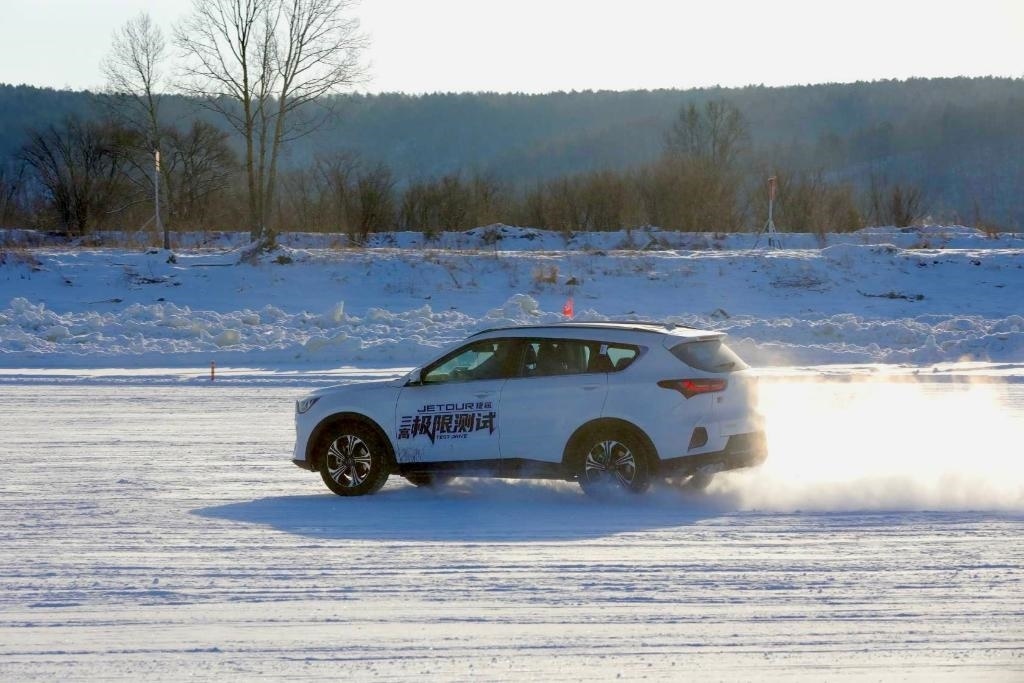 2萬多平方米的漠河紅河谷寒地試車基地內(nèi),形態(tài)多樣的冰雪路面上,雪霧彌漫,馬達轟鳴,燈光閃爍,加速、轉(zhuǎn)彎、急停、漂移……試車人員進行著一系列“炫酷操作”,冰雪飛揚的場地留下一串飄逸的車影。