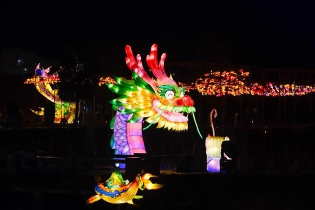 同樣迎來2024年龍年新春燈會(huì)的,還有湖北省恩施州宣恩縣城,這里的龍?jiān)煨蜔艚M格外亮眼,特別是其中一條非常壯觀的“貢水游龍”,龍身由30多只竹筏串聯(lián)而成,總長(zhǎng)度達(dá)到200多米。游客還可以登上龍船觀燈展、賞夜色。隨著金色的巨龍?jiān)诒趟序暄延蝿?dòng),也傳遞著吉祥的寓意。