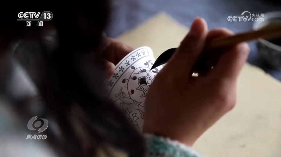 24歲的楊紫萱是孫立新的一位徒弟,去年6月,她開始跟孫立新學(xué)習(xí)陶瓷繪畫技藝。