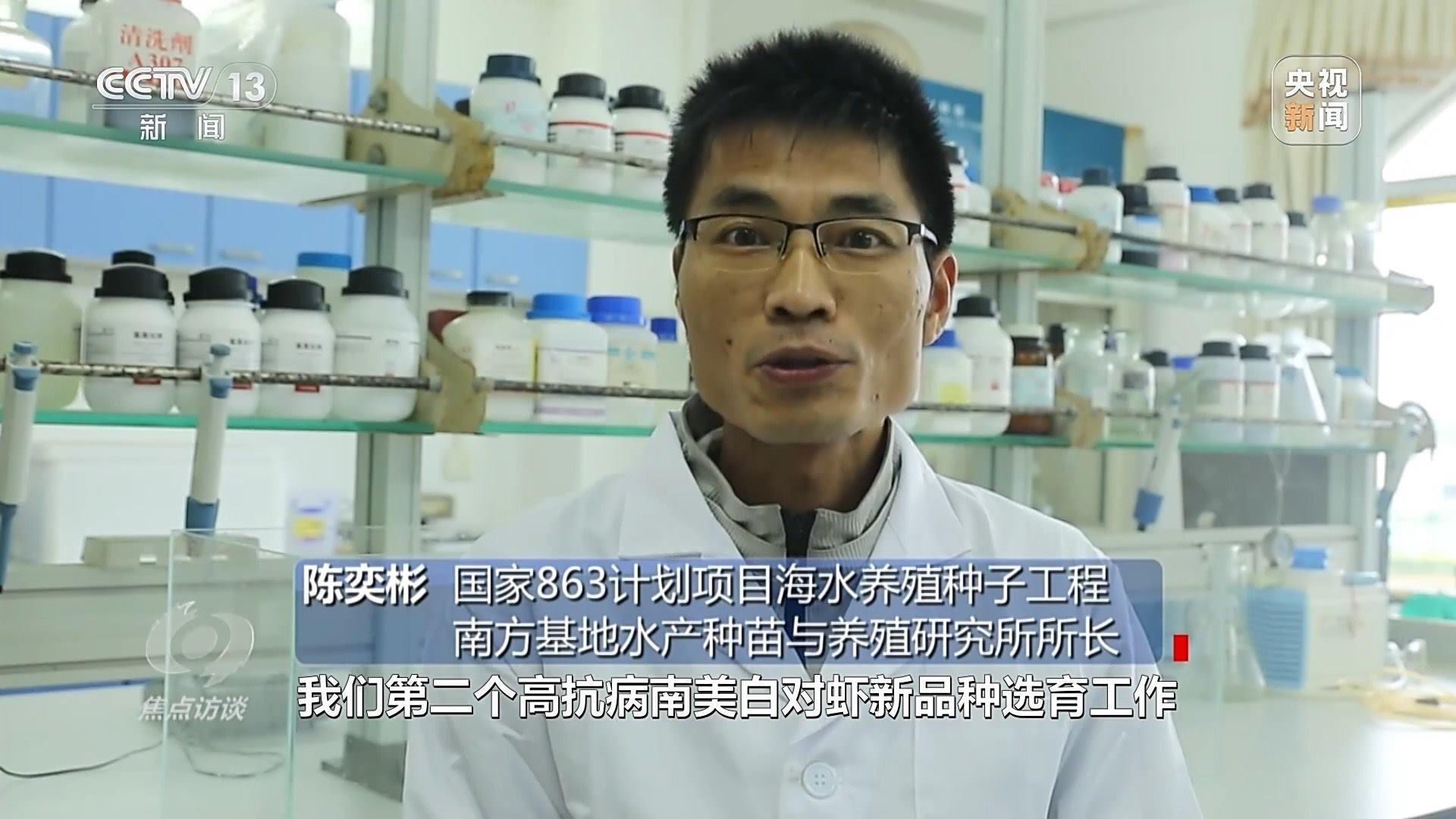 陳奕彬:“我們第二個(gè)高抗病南美白對(duì)蝦新品種選育工作,取得了關(guān)鍵性突破,讓人很振奮。2023年,還有一件令我更振奮的事情,就是習(xí)總書(shū)記來(lái)我們基地,我見(jiàn)到了總書(shū)記?!?/p>