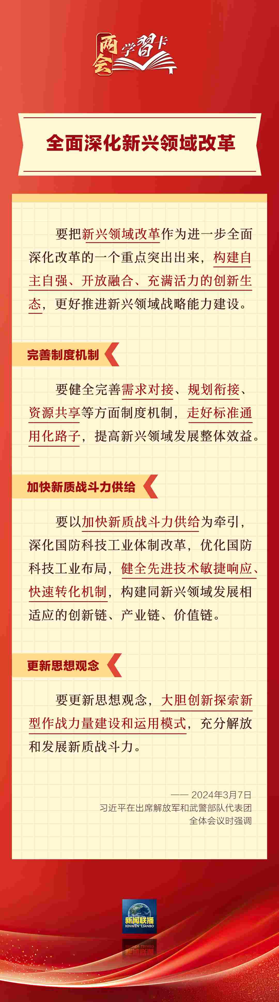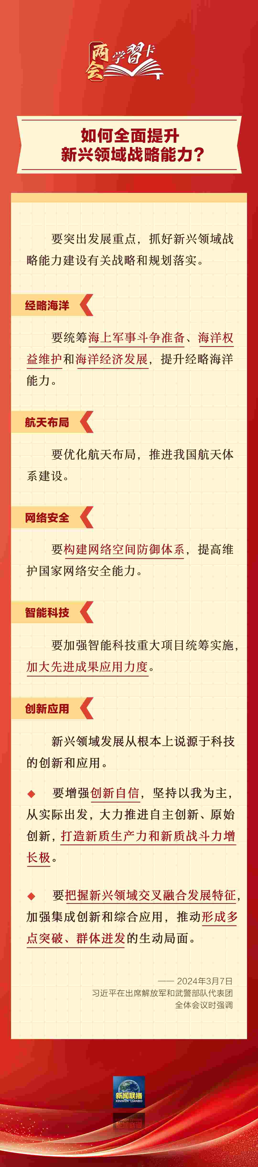 3月7日,習近平在出席解放軍和武警部隊代表團全體會議時強調(diào),強化使命擔當,深化改革創(chuàng)新,全面提升新興領域戰(zhàn)略能力。如何提升新興領域戰(zhàn)略能力?一起學習↓↓↓