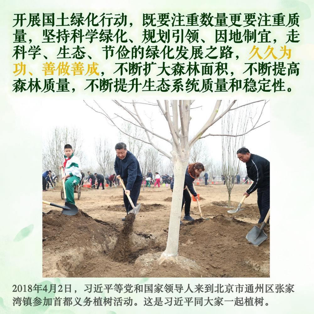 身體力行,持之以恒。此后的11個(gè)春天,無論晴雨,總書記都抽出時(shí)間加入植綠隊(duì)伍,并對(duì)國(guó)土綠化事業(yè)提出殷殷囑托。堅(jiān)持,是12年來總書記反復(fù)強(qiáng)調(diào)的關(guān)鍵內(nèi)涵。