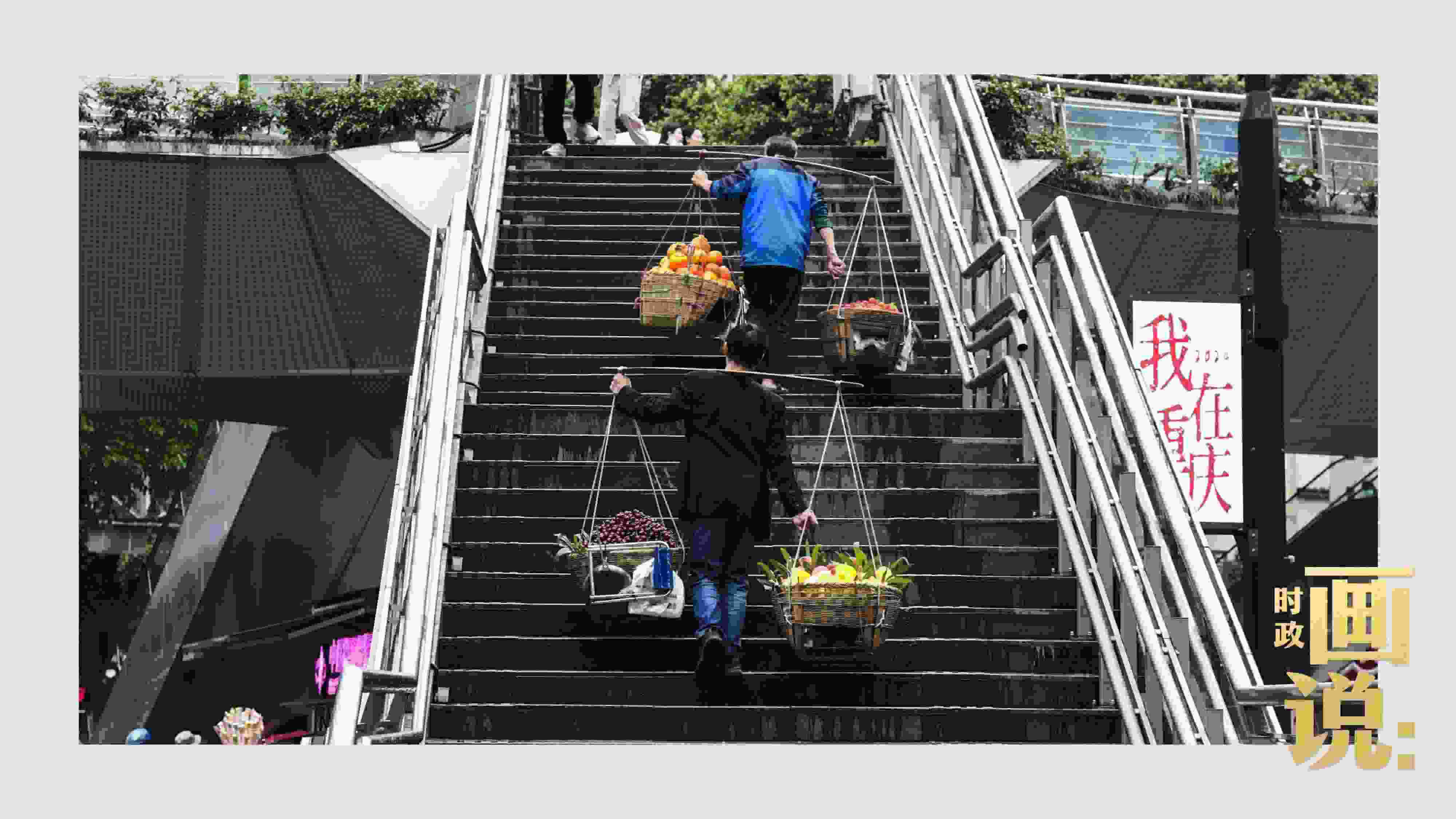 △棗子嵐埡正街,急匆匆的快遞“小哥”跑過五彩瓷磚臺階。