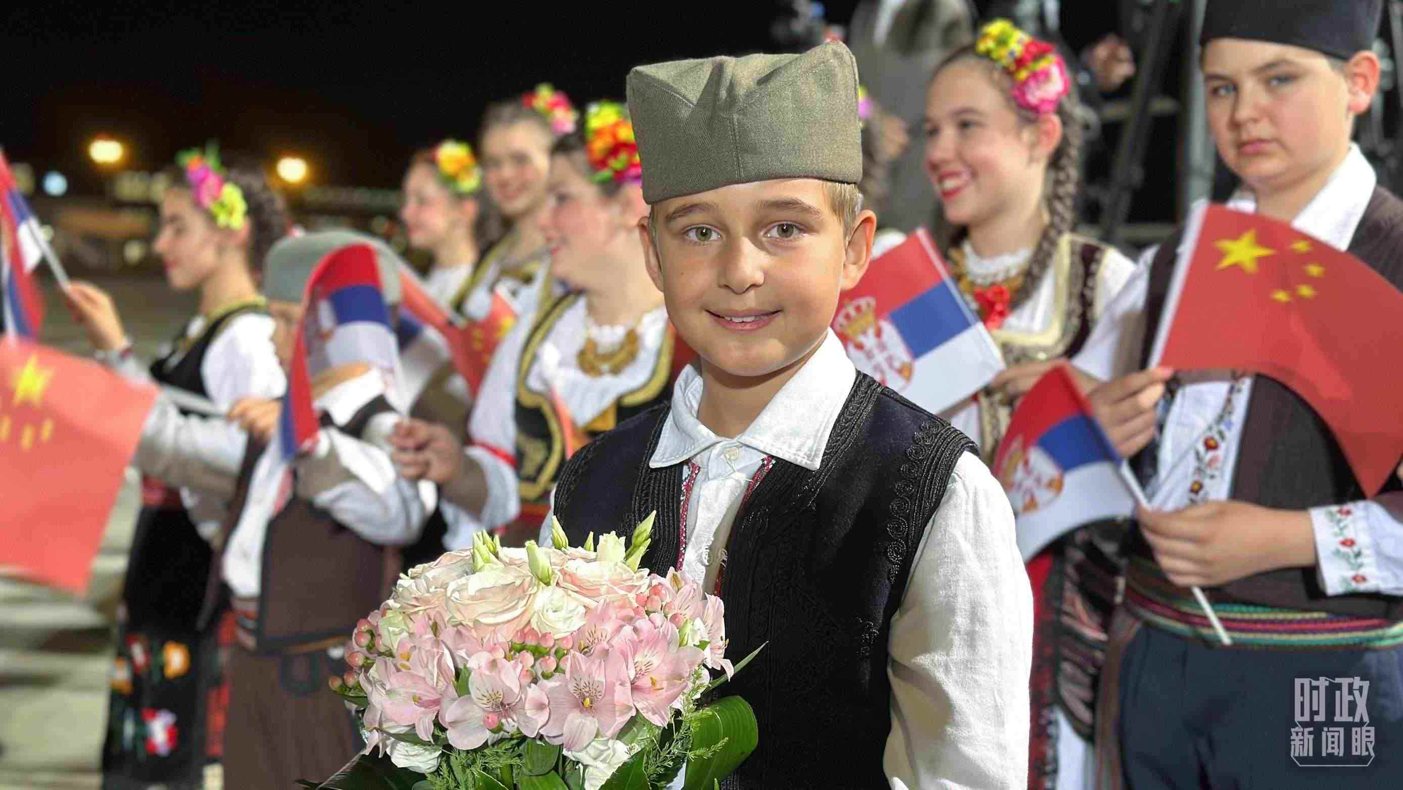 △機場迎接習主席的塞爾維亞少年。(總臺央視記者范一鳴拍攝)