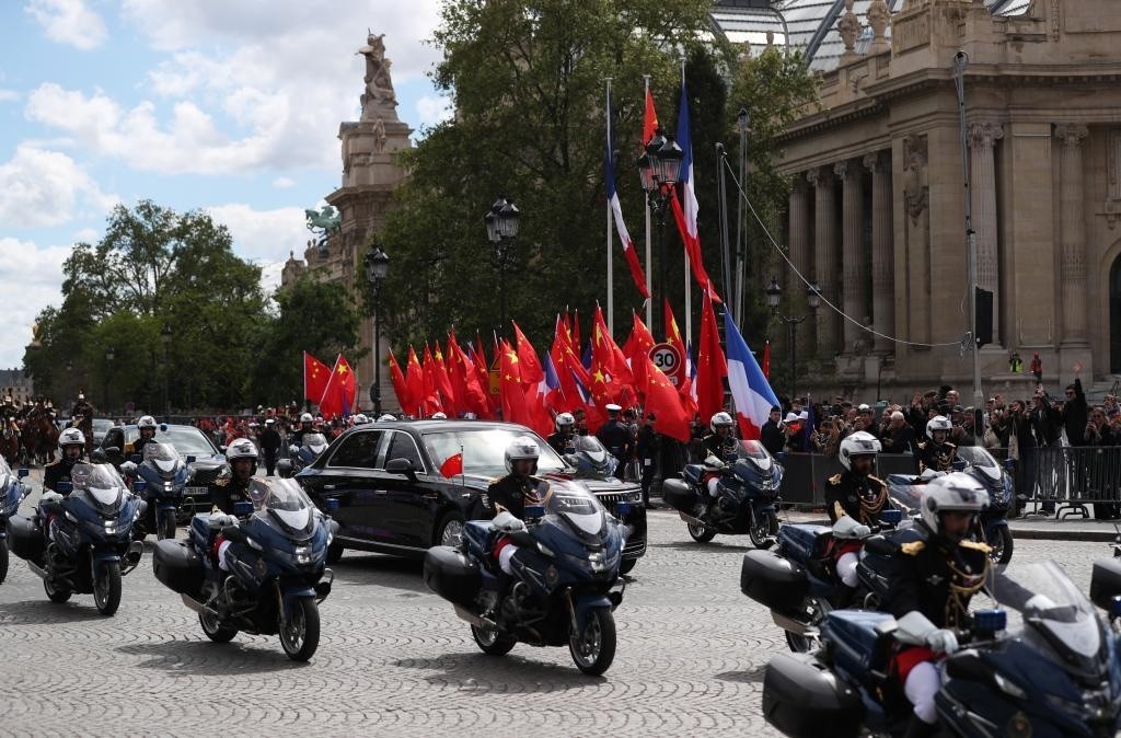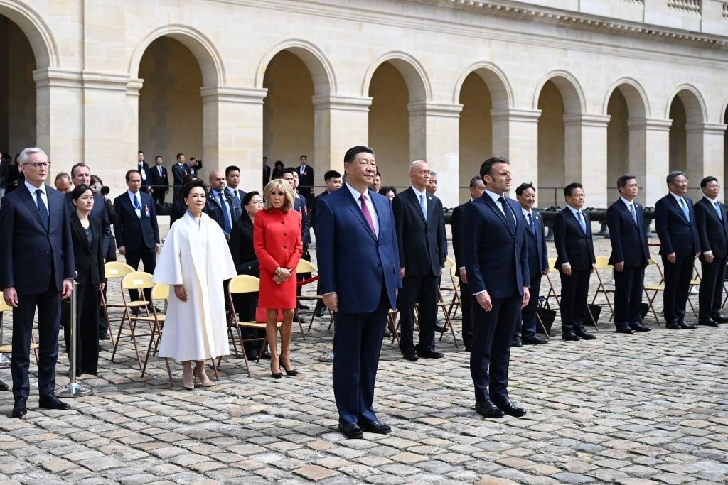 五月的巴黎,風(fēng)和景明。塞納河畔,榮軍院金色穹頂熠熠生輝,五星紅旗和藍白紅三色旗迎風(fēng)飄揚。