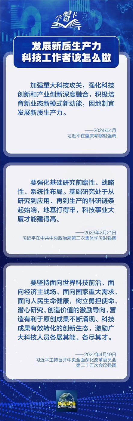 2024年5月30日是第八個(gè)“全國(guó)科技工作者日”。實(shí)現(xiàn)科技自立自強(qiáng)、建設(shè)世界科技強(qiáng)國(guó),廣大科技工作者責(zé)任重大、使命光榮。培育發(fā)展新質(zhì)生產(chǎn)力的新動(dòng)能,廣大科技工作者可以怎么做?習(xí)近平總書(shū)記的一系列論述指明了方向。一起學(xué)習(xí)↓↓↓