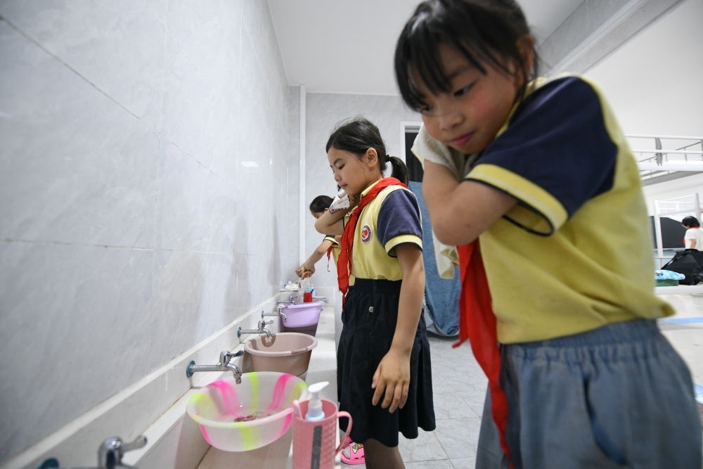 5月30日,學(xué)生在宿舍內(nèi)洗漱。