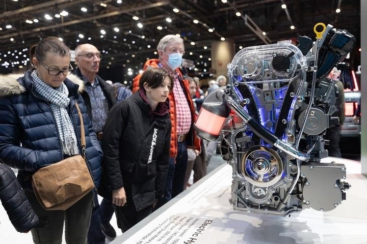△觀眾在瑞士舉行的2024年日內(nèi)瓦國際車展上參觀比亞迪新款發(fā)動機(jī)。