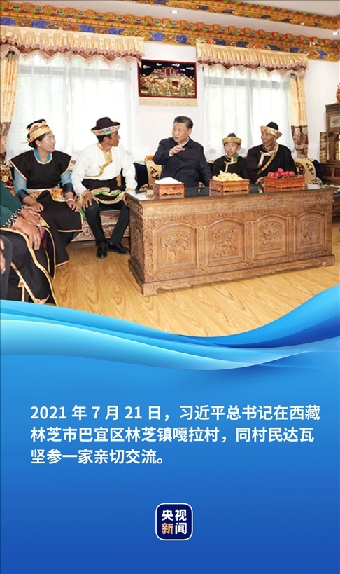 2021年的西藏考察,是習(xí)近平總書記闊別10年后的再次踏訪。3天的行程,從林芝到拉薩,此起彼伏的“扎西德勒”,載歌載舞的各族群眾,哈達(dá)、熱巴鼓、切瑪、青稞酒,幸福的日子宛如綻放的格桑花。