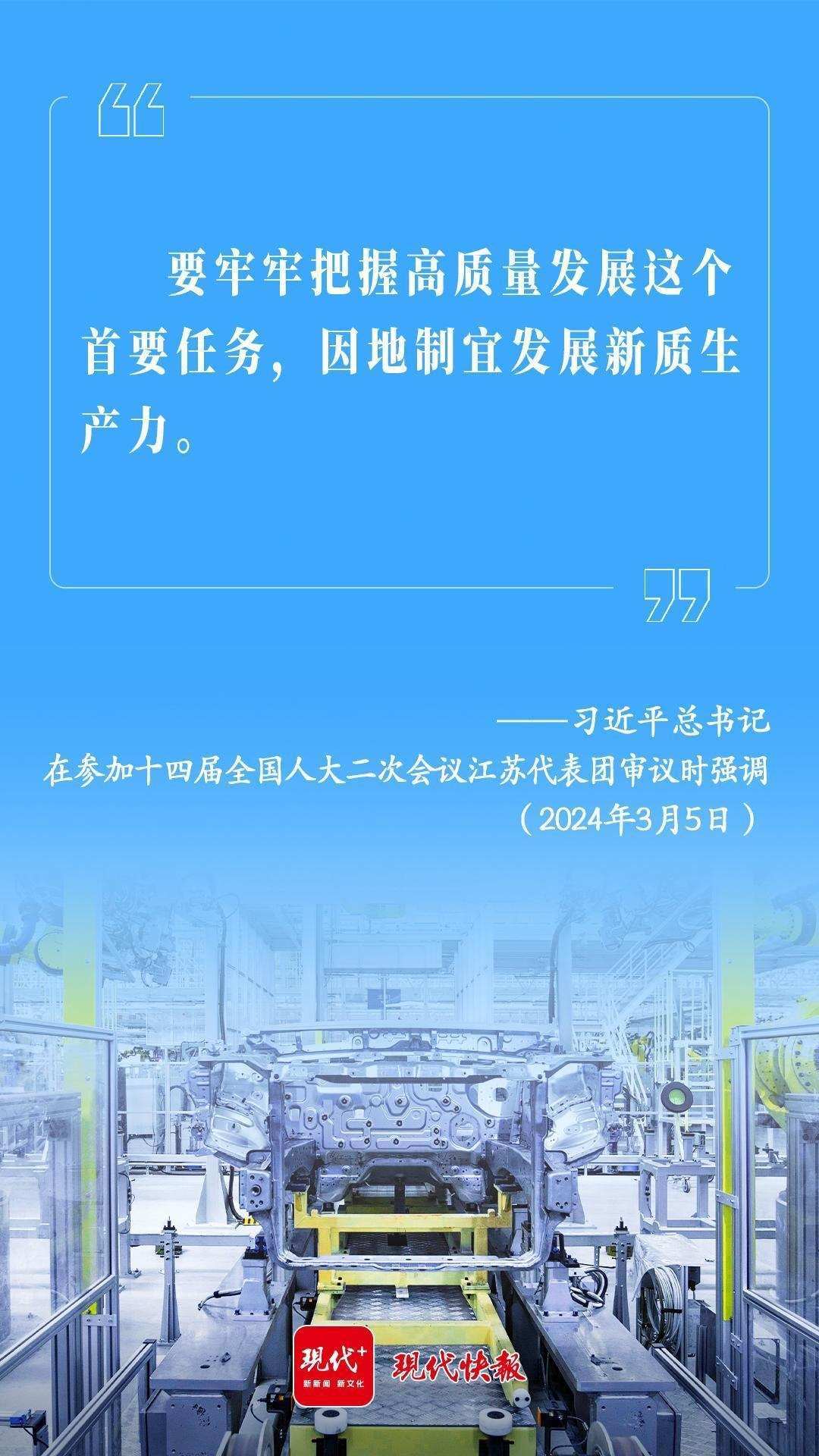 2024年3月5日,習(xí)近平總書(shū)記在參加十四屆全國(guó)人大二次會(huì)議江蘇代表團(tuán)審議時(shí)強(qiáng)調(diào):“要牢牢把握高質(zhì)量發(fā)展這個(gè)首要任務(wù),因地制宜發(fā)展新質(zhì)生產(chǎn)力?!?/p>
