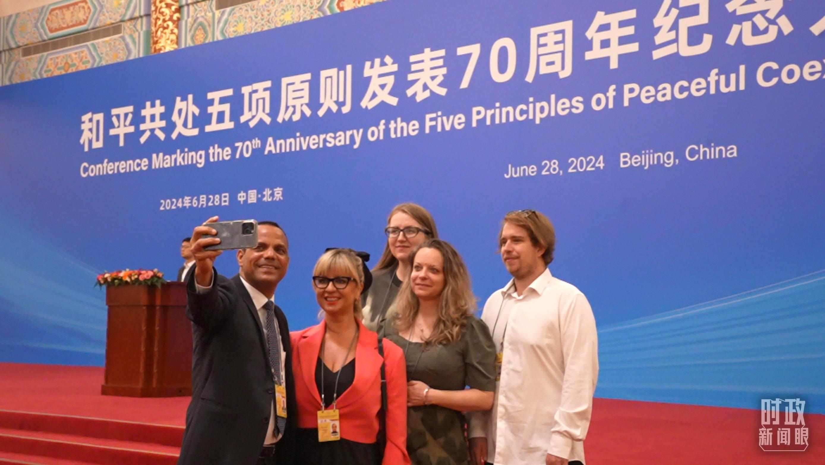 △出席紀(jì)念大會(huì)的外國(guó)嘉賓在現(xiàn)場(chǎng)合影留念。(總臺(tái)央視記者姚瑤拍攝)