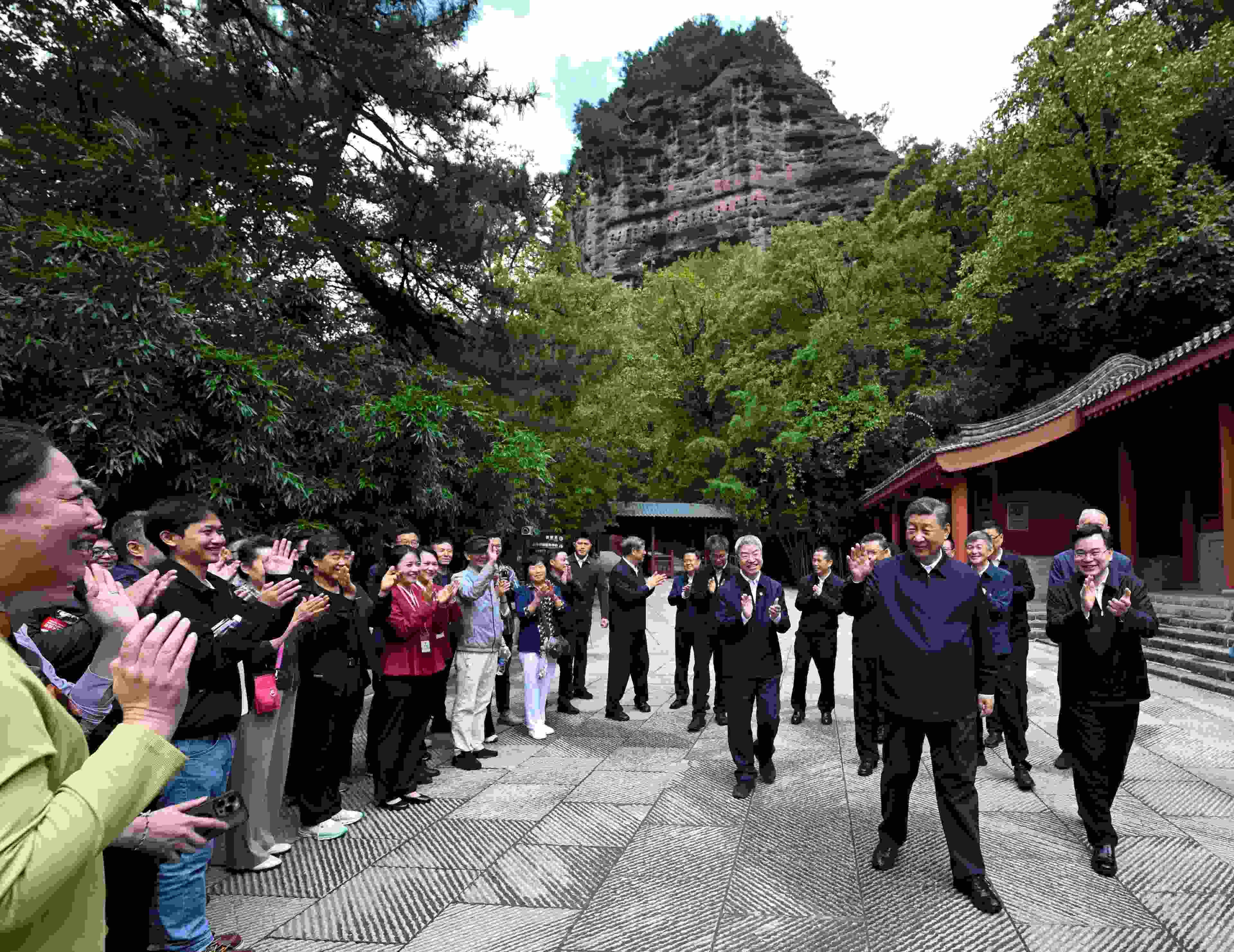 10日下午至11日上午,習(xí)近平總書記先后來到陜西省寶雞市和甘肅省天水市考察調(diào)研。在寶雞市,習(xí)近平考察了寶雞青銅器博物院、渭河生態(tài)公園,了解當(dāng)?shù)丶訌?qiáng)文物保護(hù)利用和開展渭河生態(tài)保護(hù)治理等情況。在天水市,習(xí)近平考察了伏羲廟、麥積區(qū)南山花牛蘋果基地、麥積山石窟,了解當(dāng)?shù)赝苿游幕z產(chǎn)保護(hù)傳承、發(fā)展特色現(xiàn)代山地果業(yè)等情況。