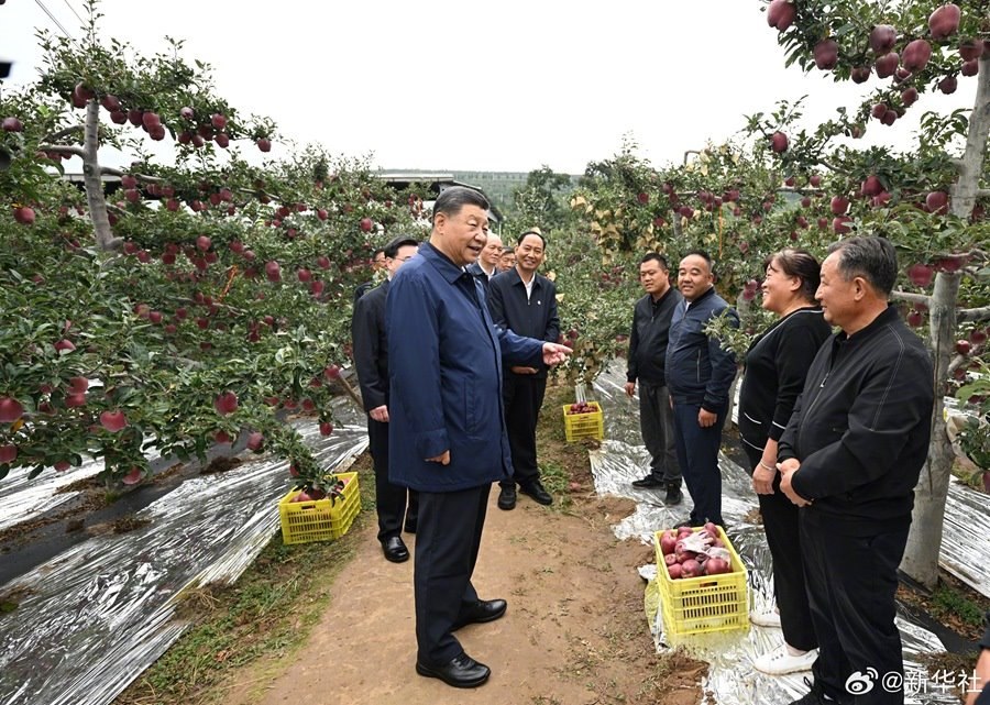 11日上午,習(xí)近平總書記來到甘肅天水市麥積區(qū)南山花牛蘋果基地考察,走進(jìn)果林向現(xiàn)場的果農(nóng)、農(nóng)技人員等詳細(xì)詢問花牛蘋果品質(zhì)特色、種植技術(shù)、市場銷路等,并同鄉(xiāng)親們親切交流。習(xí)近平說,鄉(xiāng)村振興要靠產(chǎn)業(yè),各地要各展其長,走適合自己的振興道路。習(xí)近平勉勵(lì)鄉(xiāng)親們?cè)俳釉賲枺烟O果產(chǎn)業(yè)做得更大更強(qiáng),過上更加幸福的生活。(文字記者:張曉松、朱基釵;攝影記者:鞠鵬、謝環(huán)馳)