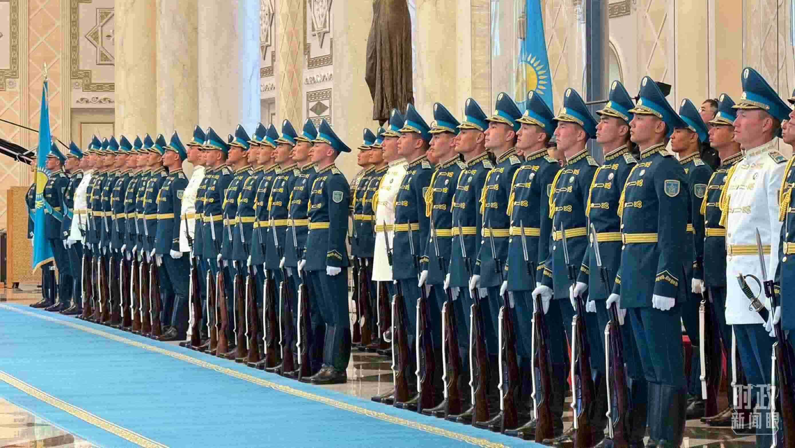 △哈薩克斯坦總統(tǒng)府禮兵。(總臺(tái)央視記者程鋮、蔣碩拍攝)