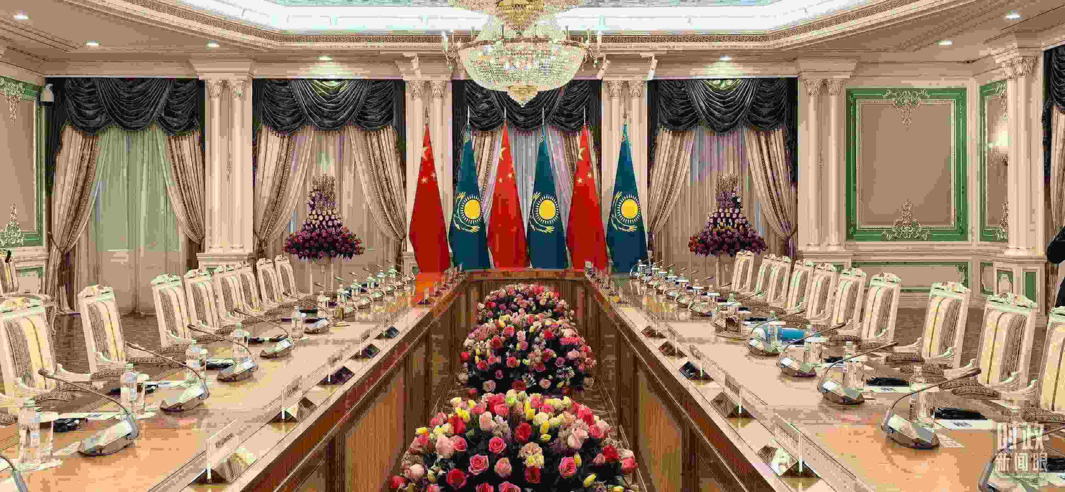 △中哈元首小范圍會(huì)談開始前的現(xiàn)場(chǎng)。(總臺(tái)央視記者劉岳拍攝)