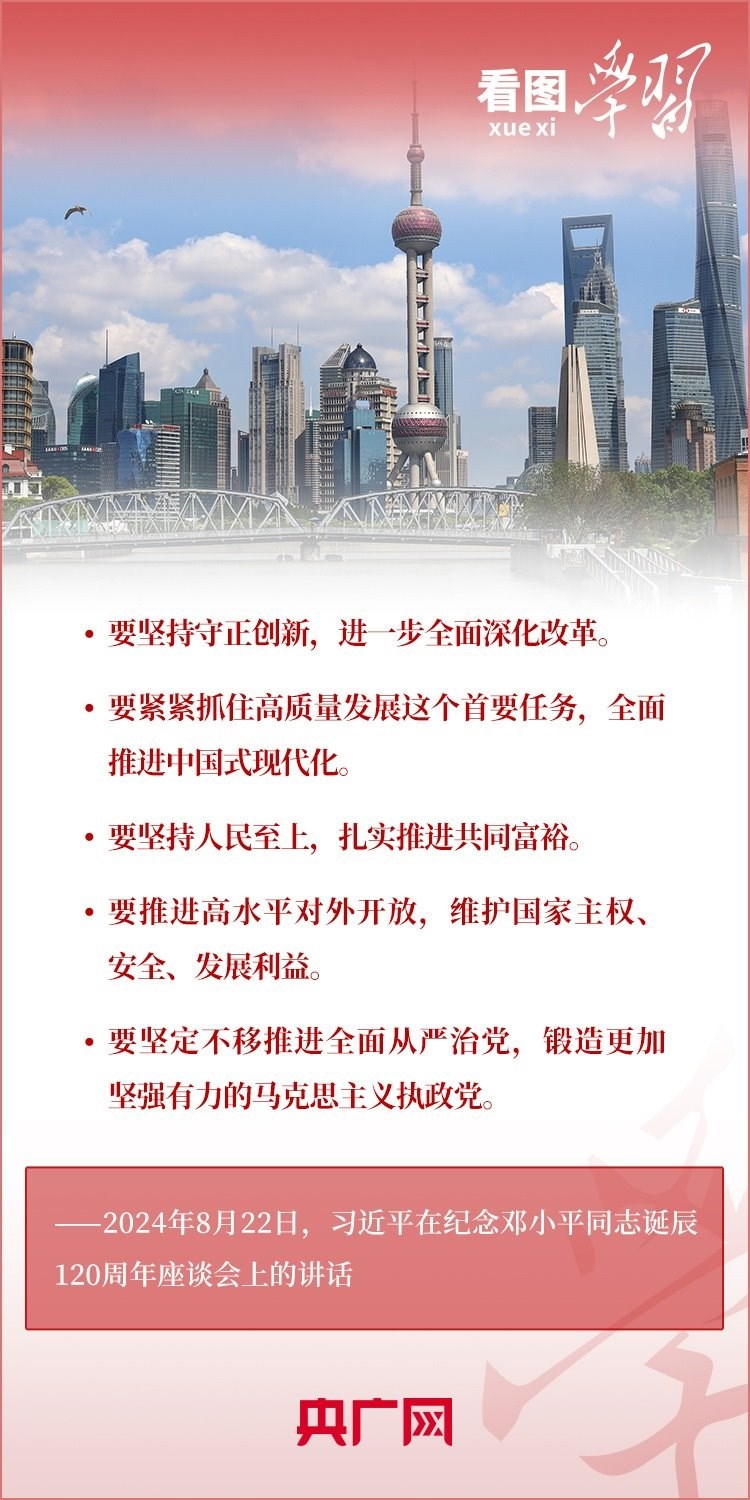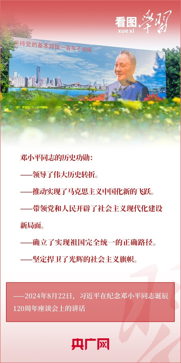 8月22日,習(xí)近平總書記在紀(jì)念鄧小平同志誕辰120周年座談會(huì)上發(fā)表重要講話指出,鄧小平同志的歷史功勛是全方位的、開創(chuàng)性的,對(duì)中國和世界的影響是深刻的、長(zhǎng)遠(yuǎn)的。總書記強(qiáng)調(diào),對(duì)鄧小平同志最好的紀(jì)念,就是把他開創(chuàng)的中國特色社會(huì)主義事業(yè)繼續(xù)推向前進(jìn)。我們要緊緊圍繞以中國式現(xiàn)代化全面推進(jìn)強(qiáng)國建設(shè)、民族復(fù)興偉業(yè)這個(gè)中心任務(wù),繼往開來,奮發(fā)進(jìn)取。一起來學(xué)習(xí)!