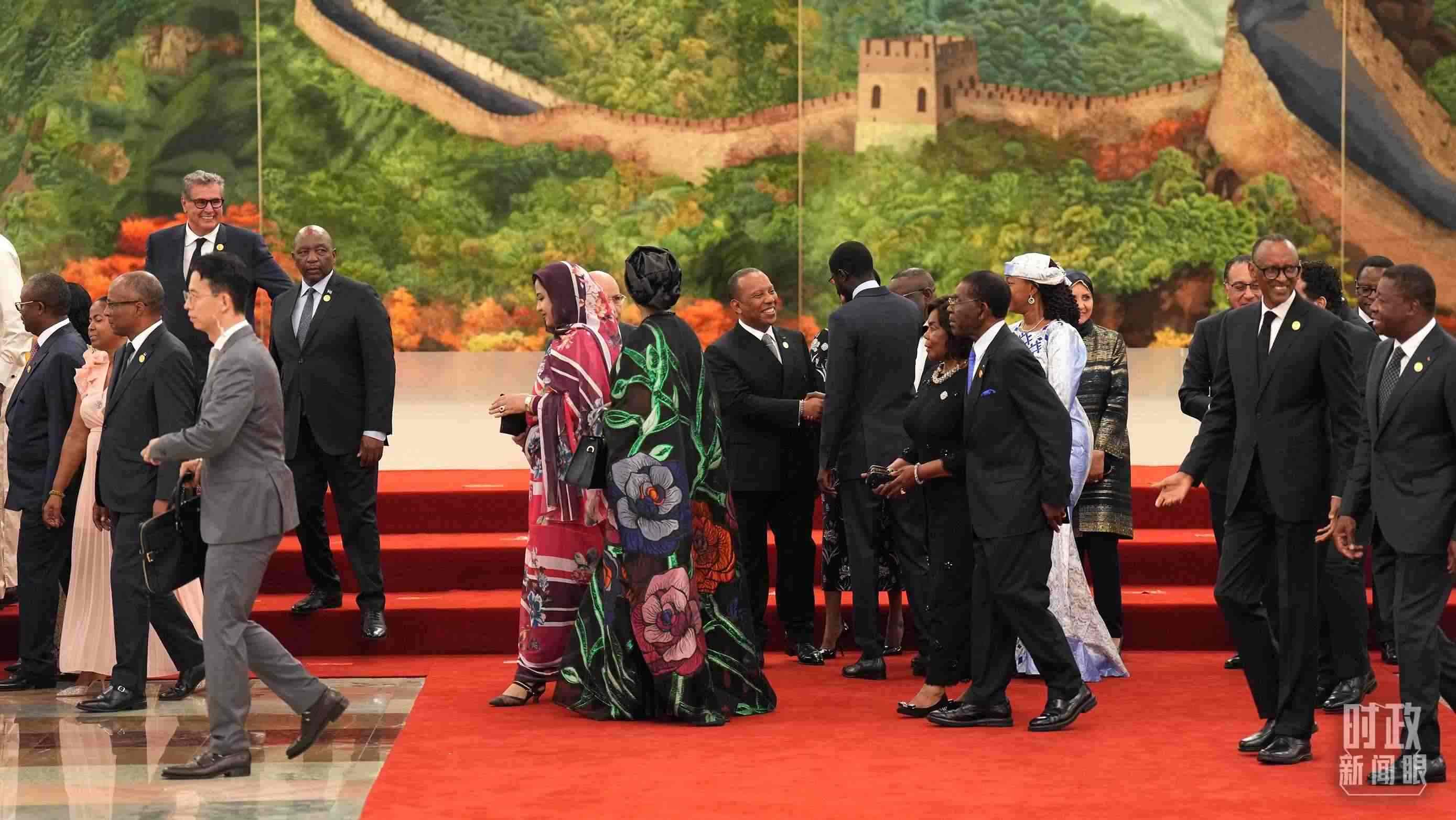 △非洲國(guó)家領(lǐng)導(dǎo)人步入人民大會(huì)堂。(總臺(tái)央視記者趙怡彬拍攝)