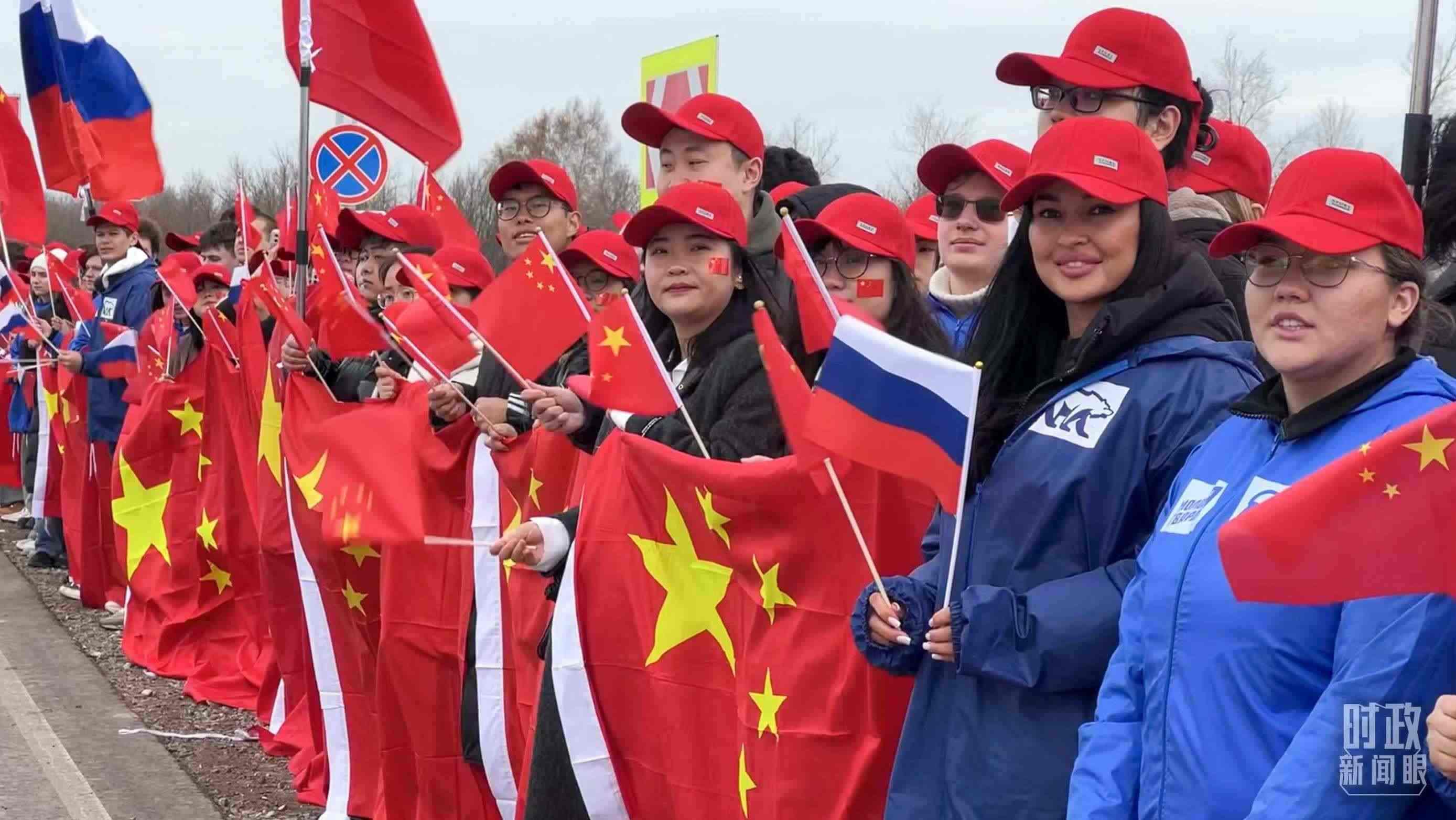△ 俄羅斯喀山各界人士揮舞中俄兩國國旗,歡迎習(xí)主席到訪。(總臺(tái)央視記者楊新禹拍攝)