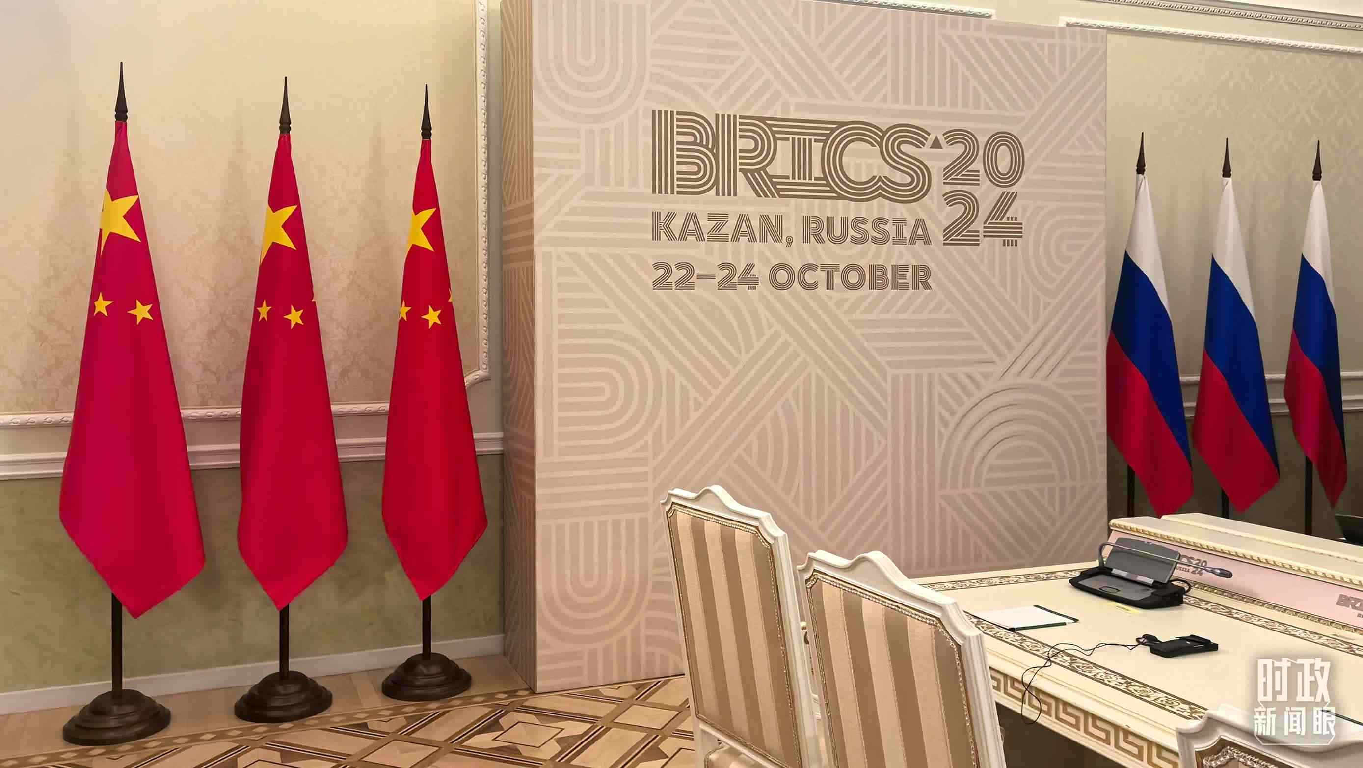 △ 中俄兩國元首喀山會(huì)晤開始前的現(xiàn)場。(總臺(tái)央視記者程鋮拍攝)