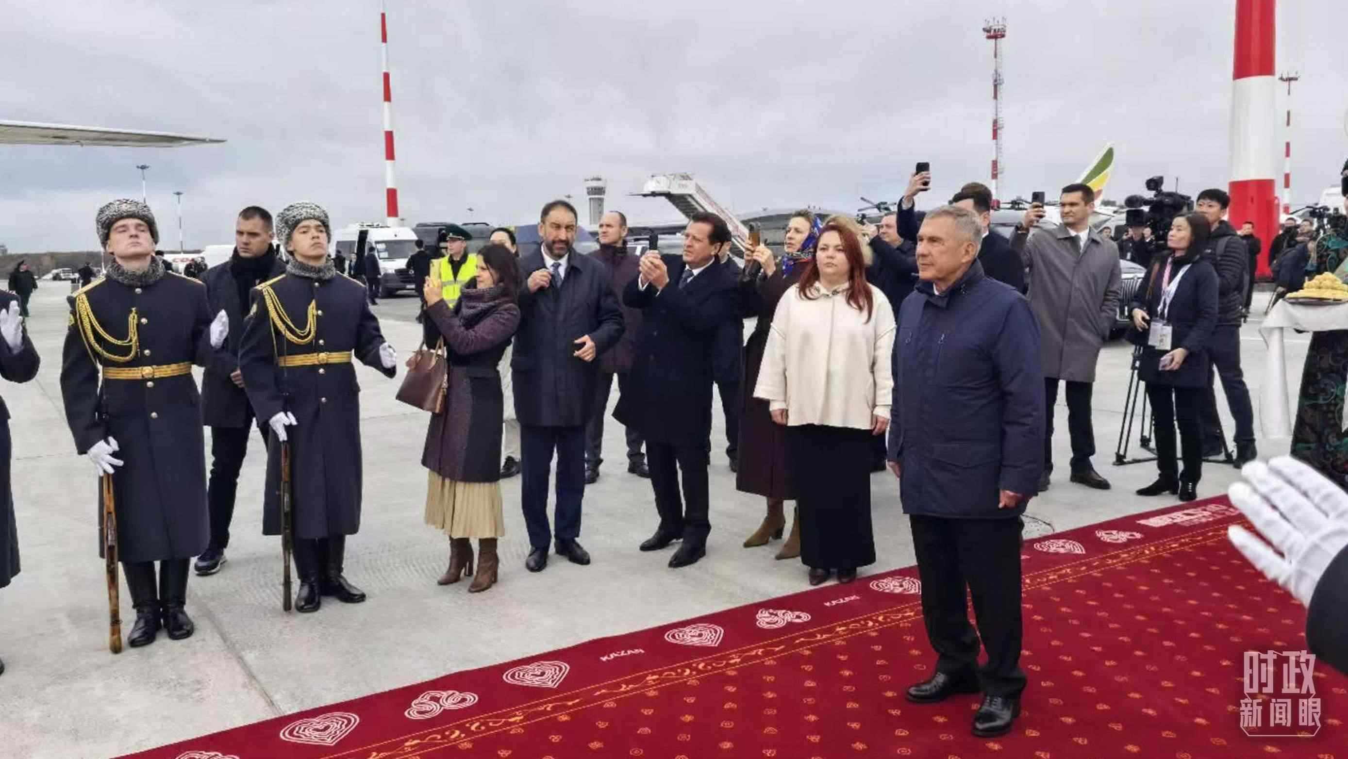 △ 習(xí)主席專機(jī)抵達(dá)喀山國際機(jī)場時(shí),俄羅斯聯(lián)邦韃靼斯坦共和國行政長官等在機(jī)場熱情迎接。(總臺(tái)央視記者王鵬飛拍攝)
