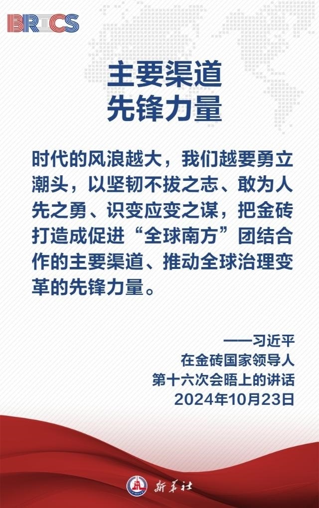 當地時間10月23日,國家主席習近平在俄羅斯喀山出席金磚國家領導人第十六次會晤并發(fā)表題為《登高望遠,穿云破霧 推動“大金磚合作”高質量發(fā)展》的重要講話,為推動“大金磚合作”行穩(wěn)致遠指明五個方向——