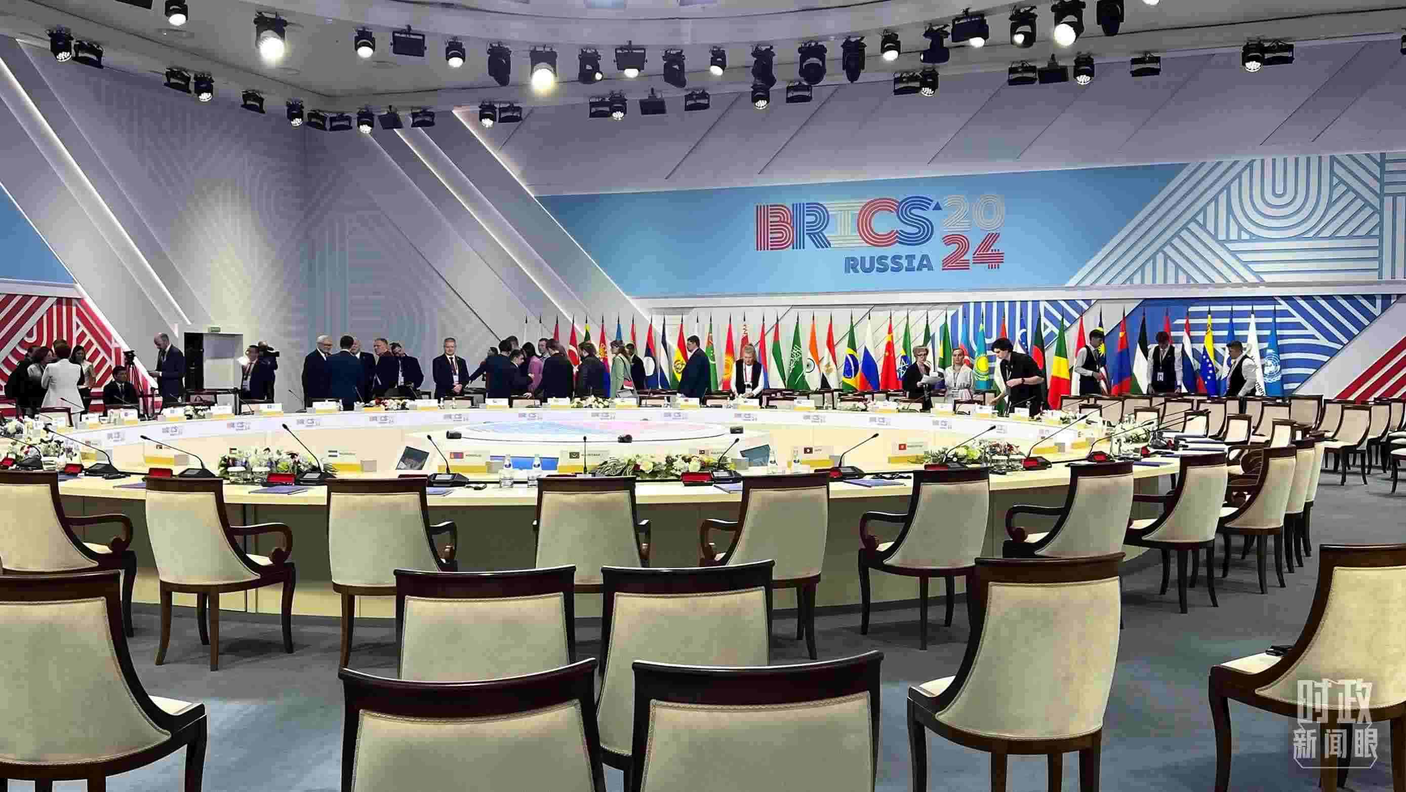 △今年“金磚+”領(lǐng)導(dǎo)人對話會在喀山會展中心舉行,這是對話會開始前的現(xiàn)場。(總臺央視記者程鋮拍攝)