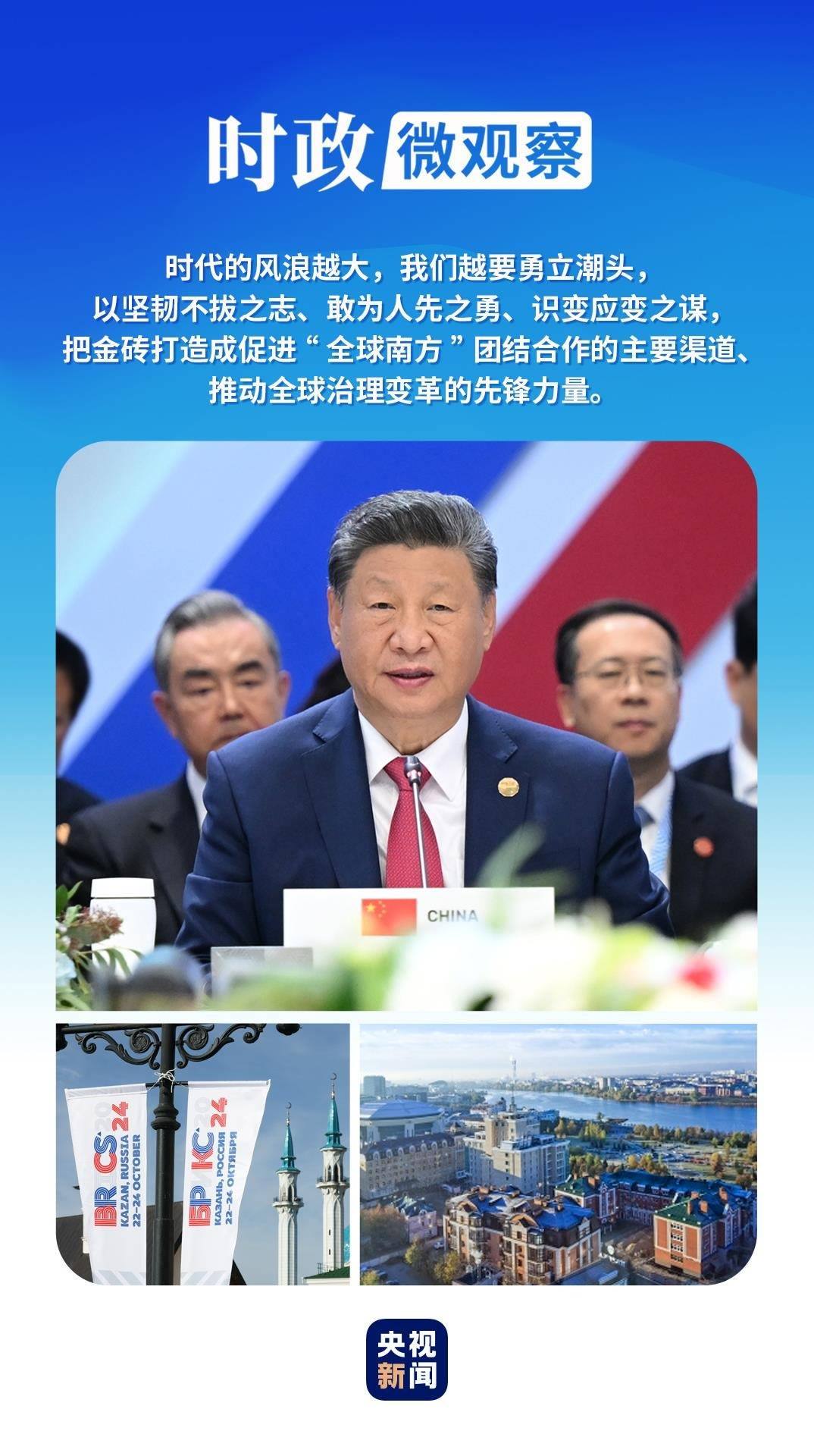 喀山之行的一系列密集活動中,習近平主席深刻闡釋“精神力量”與“挺膺擔當”,為開創(chuàng)“大金磚合作”高質量發(fā)展新局面引領航向。《時政微觀察》為你解讀。