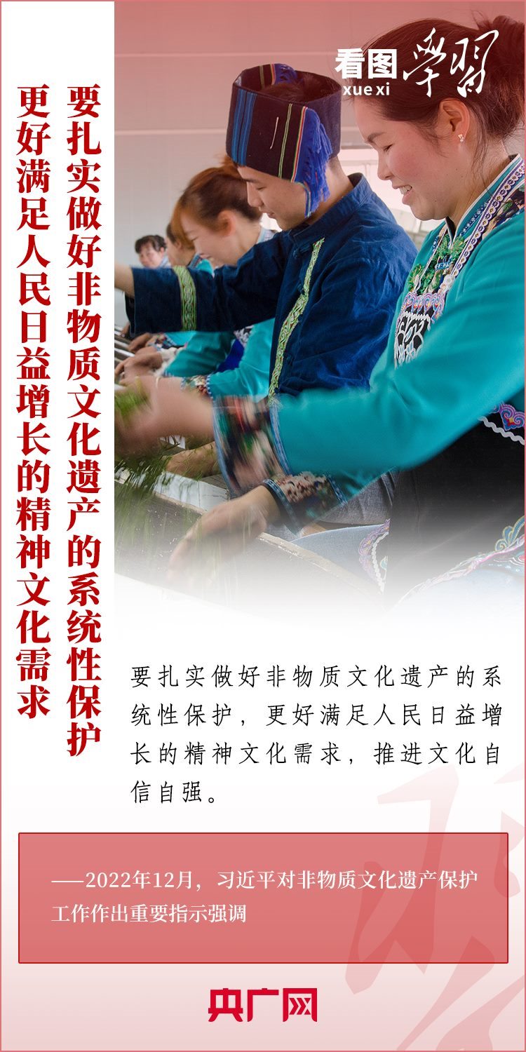 非物質(zhì)文化遺產(chǎn)是中華優(yōu)秀傳統(tǒng)文化的重要組成部分,是中華文明綿延傳承的生動見證。習(xí)近平總書記高度重視推動中華優(yōu)秀傳統(tǒng)文化的創(chuàng)造性轉(zhuǎn)化、創(chuàng)新性發(fā)展,多次對非物質(zhì)文化遺產(chǎn)保護(hù)工作作出重要指示,強(qiáng)調(diào)要扎實(shí)做好非物質(zhì)文化遺產(chǎn)的系統(tǒng)性保護(hù),推動中華文化更好走向世界。
