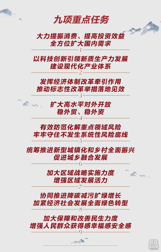 今年的中央經(jīng)濟工作會議確定,2025年要抓好9項重點任務(wù)。