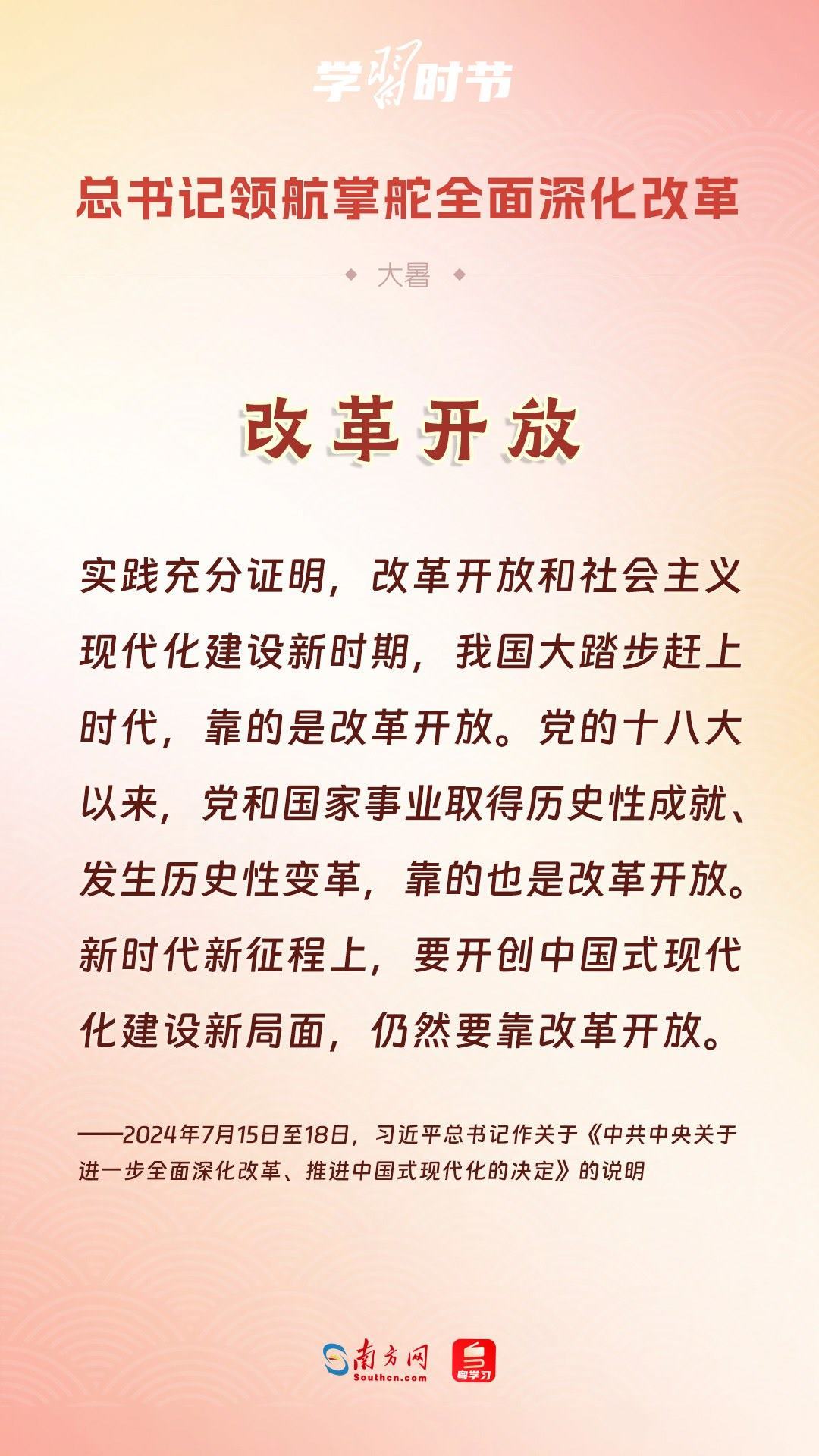 我們隆重慶祝新中國成立75周年,深情回望共和國的滄桑巨變。從五千多年中華文明的傳承中一路走來,“中國”二字鐫刻在“何尊”底部,更銘刻在每個(gè)華夏兒女心中。黨的二十屆三中全會(huì)勝利召開,吹響進(jìn)一步全面深化改革的號角。我們乘著改革開放的時(shí)代大潮闊步前行,中國式現(xiàn)代化必將在改革開放中開辟更加廣闊的前景。
