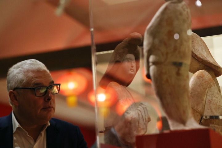 2024年11月18日,在位于法國巴黎的吉美國立亞洲藝術博物館,一名觀眾參觀“中國·唐——一個多元開放的朝代(7至10世紀)”展覽。新華社記者 高靜 攝
