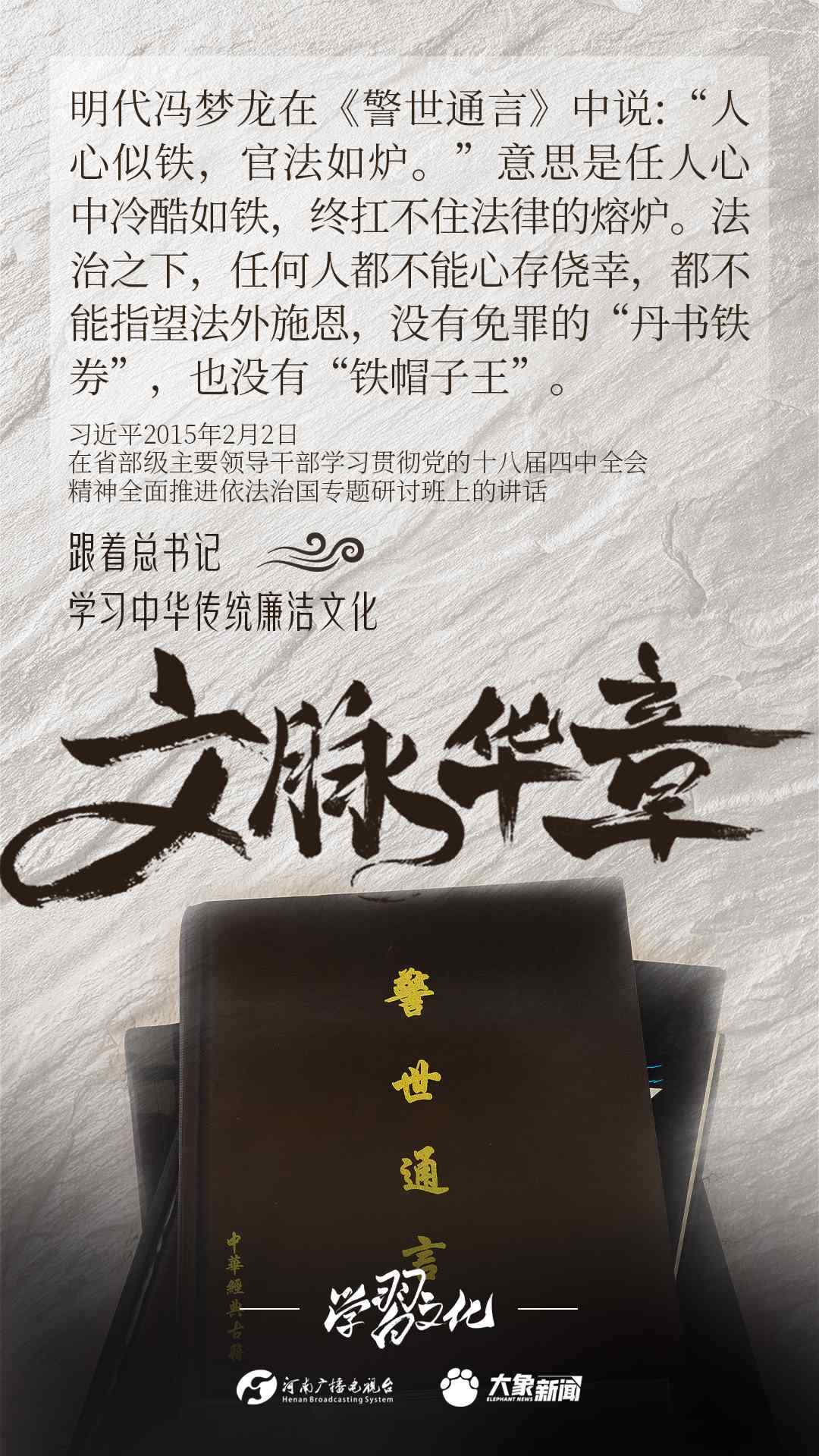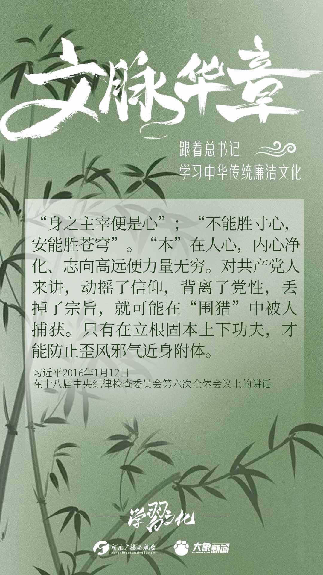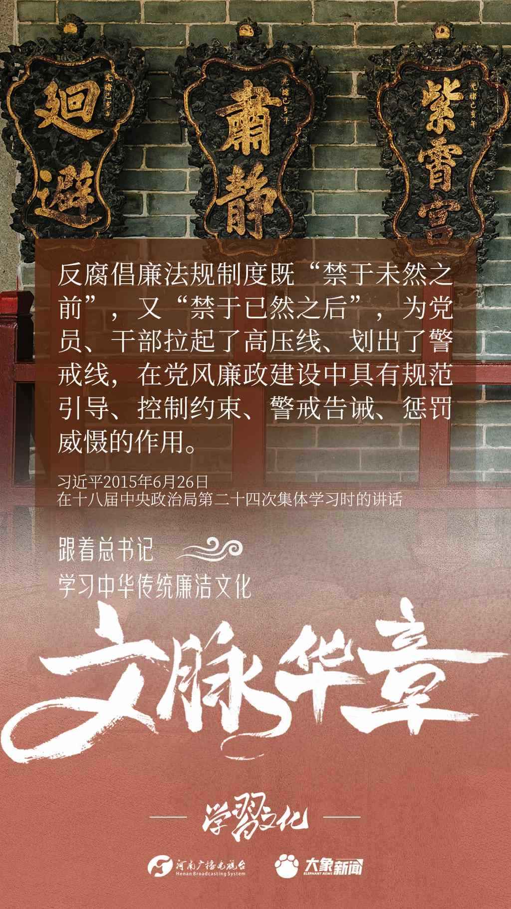 中華優(yōu)秀傳統(tǒng)文化蘊(yùn)含著豐富的廉潔文化,習(xí)近平總書記曾指出:沒有中華優(yōu)秀傳統(tǒng)文化、革命文化、社會主義先進(jìn)文化的底蘊(yùn)和滋養(yǎng),信仰信念就難以深沉而執(zhí)著??倳洺3R?jīng)據(jù)典,教育引導(dǎo)廣大黨員干部正心修身,涵養(yǎng)文化,守住為政之本。大象新聞分五期為您梳理,我們一起跟著總書記學(xué)習(xí)中華傳統(tǒng)廉潔文化。今天推出第四期。