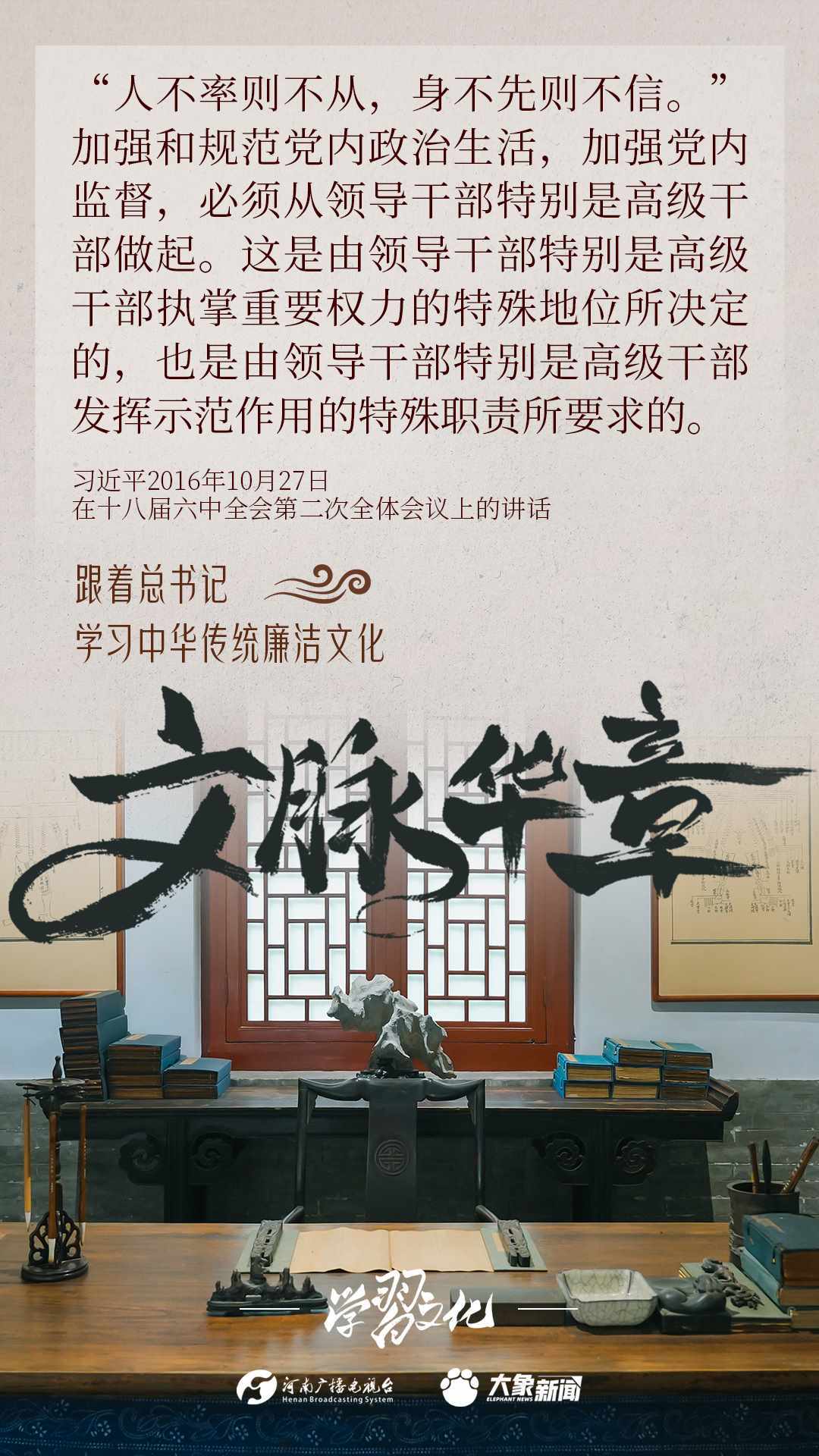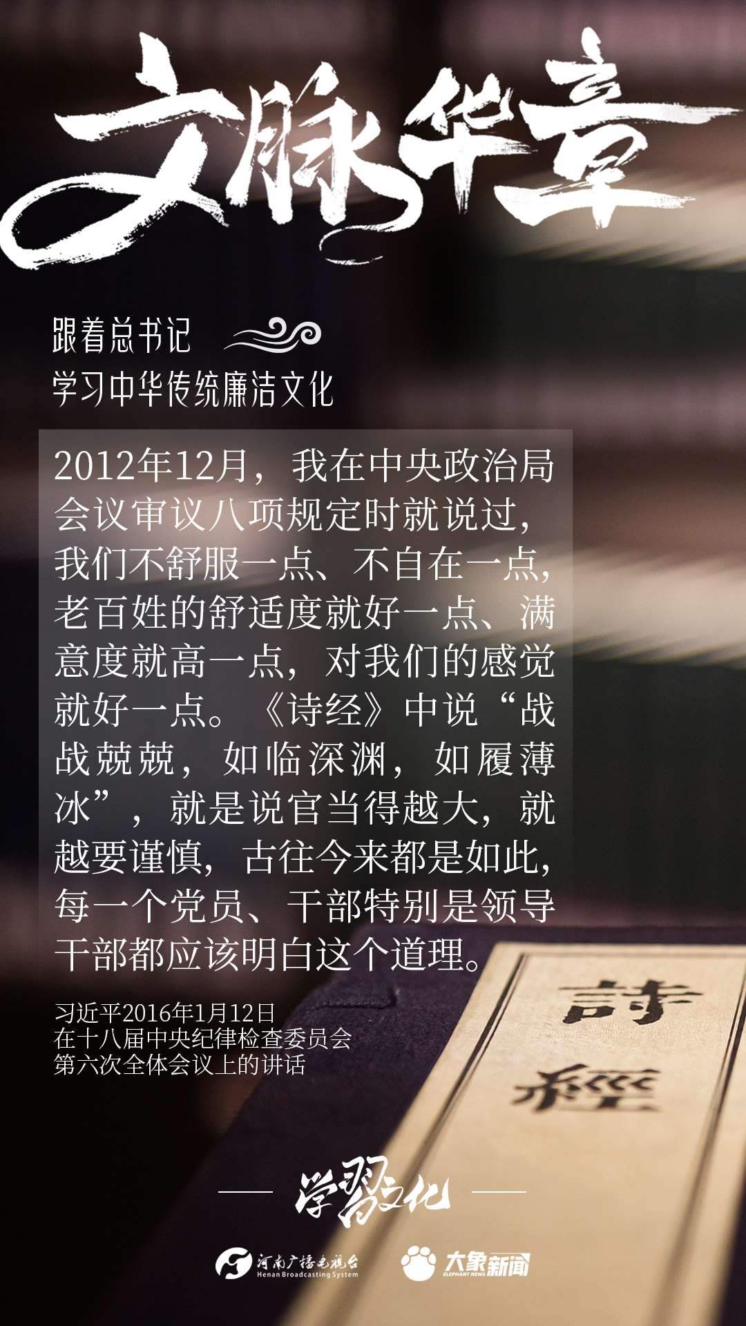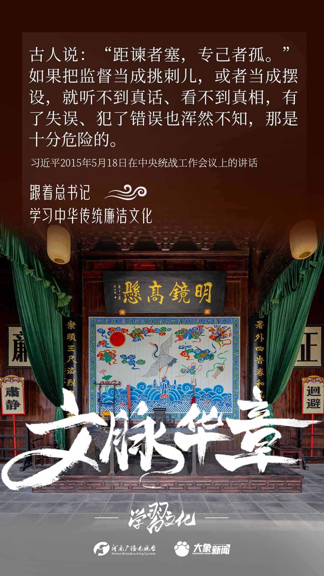 中華優(yōu)秀傳統(tǒng)文化蘊(yùn)含著豐富的廉潔文化,習(xí)近平總書記曾指出:沒有中華優(yōu)秀傳統(tǒng)文化、革命文化、社會主義先進(jìn)文化的底蘊(yùn)和滋養(yǎng),信仰信念就難以深沉而執(zhí)著??倳洺3R?jīng)據(jù)典,教育引導(dǎo)廣大黨員干部正心修身,涵養(yǎng)文化,守住為政之本。大象新聞分五期為您梳理,我們一起跟著總書記學(xué)習(xí)中華傳統(tǒng)廉潔文化。今天推出第四期。
