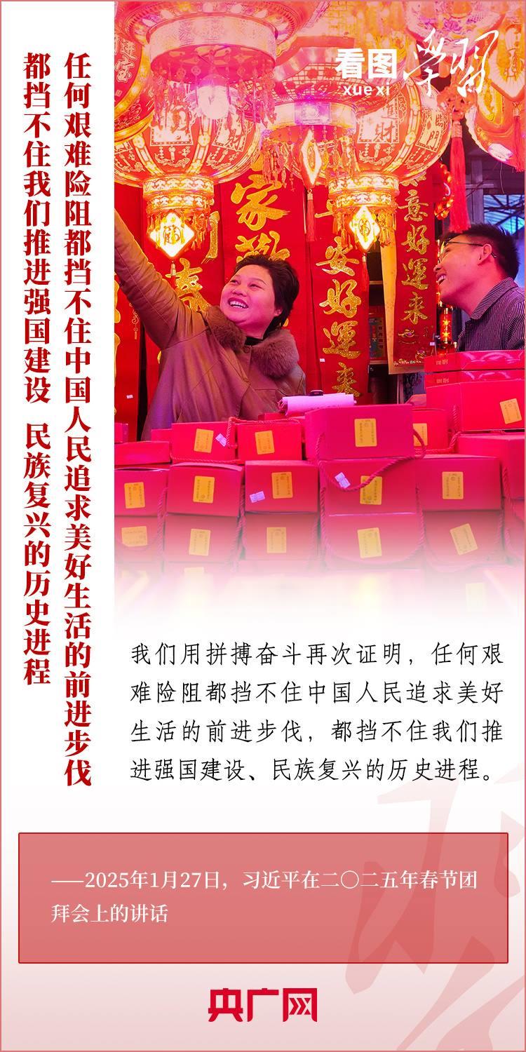 1月27日,中共中央、國務(wù)院在北京舉行春節(jié)團(tuán)拜會,習(xí)近平總書記發(fā)表熱情洋溢的講話,向全國各族人民、港澳臺同胞、海外僑胞拜年并致以新春祝福??倳浽谥v話中深情回顧過去一年中國式現(xiàn)代化取得很不平凡的發(fā)展歷程,“希望全國各族人民以蛇行千里的勁頭,堅定信心、滿懷希望,開拓進(jìn)取、頑強(qiáng)奮斗,共同書寫中國式現(xiàn)代化新篇章?!币黄饋韺W(xué)習(xí)!
