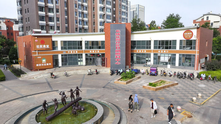 這是2024年6月20日拍攝的寧夏銀川市金鳳區(qū)長(zhǎng)城花園社區(qū)日間照料中心(無人機(jī)照片)。新華社記者 馮開華 攝