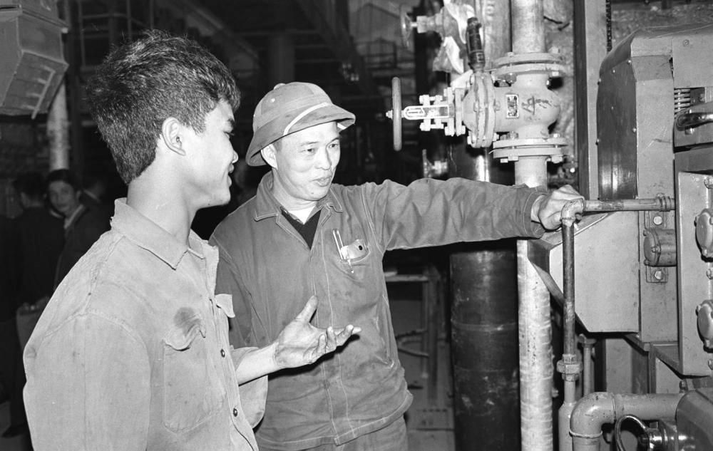 1970年,越南實習生在上海東方紅縫紉機廠學(xué)習裝配技術(shù)。