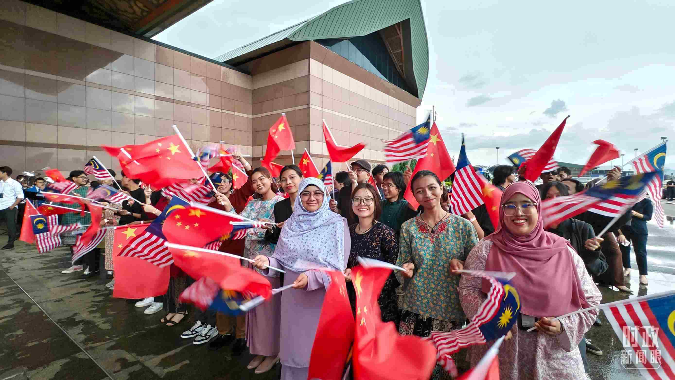 △在機場迎接習近平主席的馬來西亞當?shù)孛癖?。(總臺央視記者韓銳拍攝)