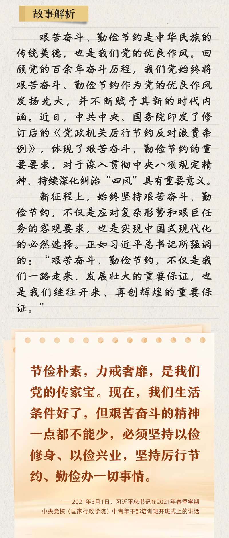 近日,中共中央、國(guó)務(wù)院印發(fā)修訂后的《黨政機(jī)關(guān)厲行節(jié)約反對(duì)浪費(fèi)條例》,進(jìn)一步弘揚(yáng)艱苦奮斗、勤儉節(jié)約的優(yōu)良作風(fēng)。今天,推出《聽習(xí)近平講作風(fēng)故事⑤丨一根燈芯》,與您一起學(xué)習(xí)毛澤東等老一輩革命家艱苦奮斗、勤儉節(jié)約的故事。