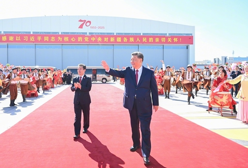 25日中午,習(xí)近平總書記在烏魯木齊出席新疆維吾爾自治區(qū)成立70周年慶?;顒?dòng)后,乘專機(jī)返回北京。在烏魯木齊市區(qū)和機(jī)場(chǎng),新疆各族群眾熱情歡送總書記。(文字記者:張曉松、朱基釵;攝影記者:謝環(huán)馳、申宏、李琰)
