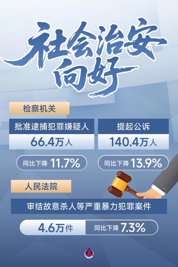 ——社會(huì)治安向好,檢察機(jī)關(guān)批捕、起訴人數(shù)均同比下降10%以上。