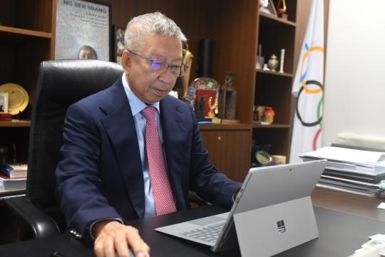 1月25日,國(guó)際奧委會(huì)副主席黃思綿在新加坡接受采訪(fǎng)。新華社發(fā)(鄧智煒攝)