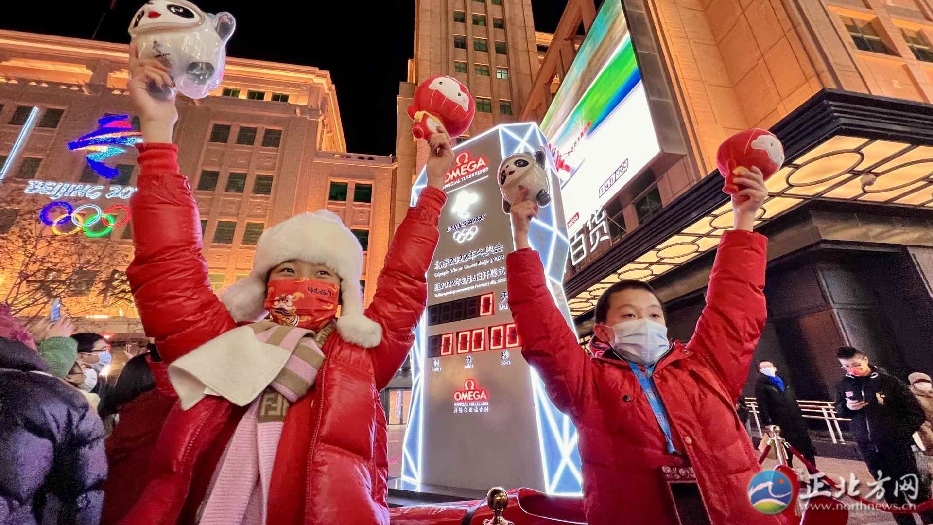 2月4日晚,北京王府井步行街,市民游客一起喜迎北京冬奧會(huì)開(kāi)幕。(記者牛天甲)