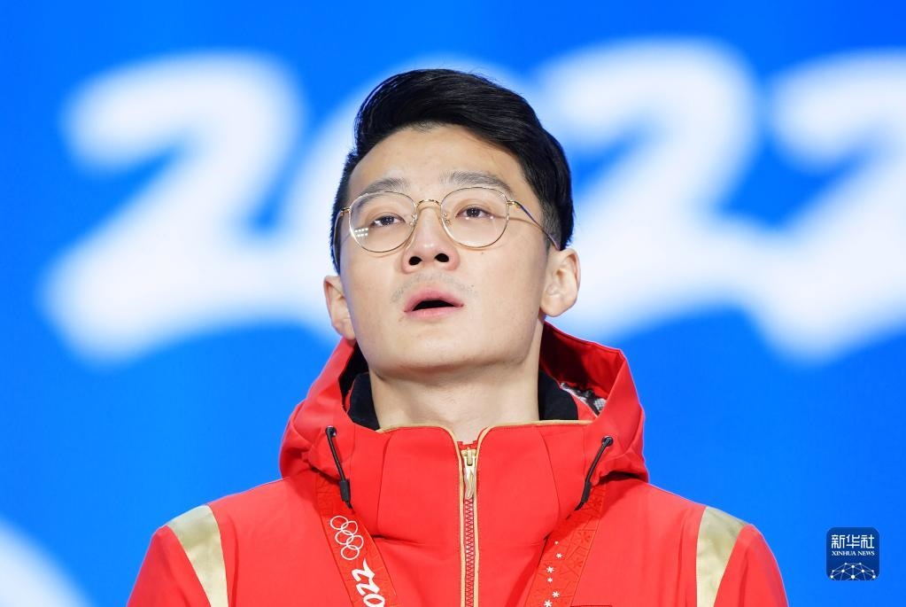 當(dāng)日,北京2022年冬奧會(huì)短道速滑男子1000米獎(jiǎng)牌頒發(fā)儀式在北京賽區(qū)頒獎(jiǎng)廣場舉行。