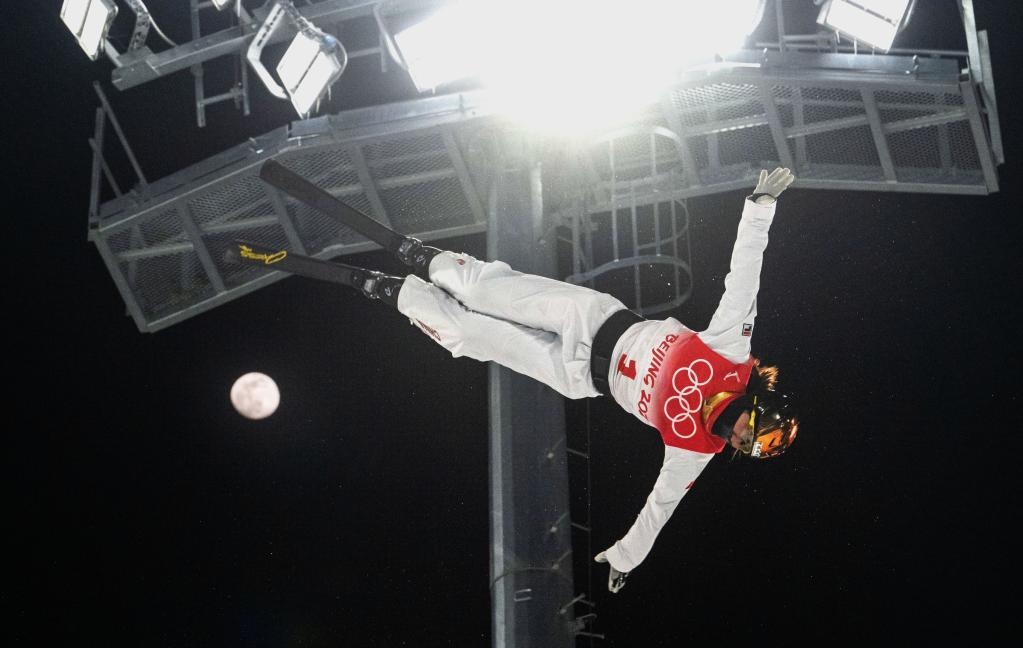 2月16日,中國隊(duì)選手齊廣璞在自由式滑雪男子空中技巧決賽中。新華社記者朱崢攝