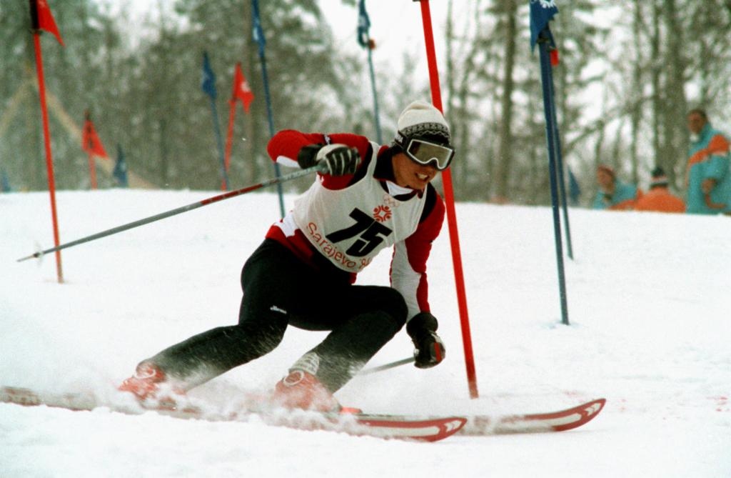 圖為中國選手李光全在第14屆冬季奧運會男子高山滑雪小回轉比賽中。新華社記者劉向陽攝