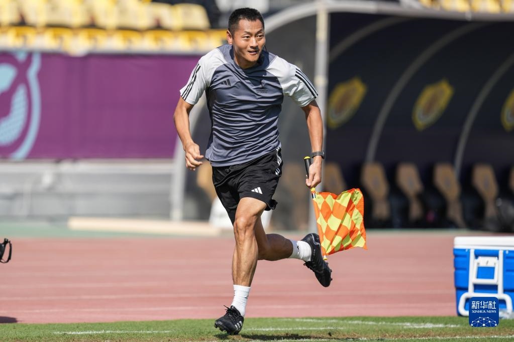 11月18日,中國裁判施翔在訓(xùn)練中。新華社記者 潘昱龍 攝