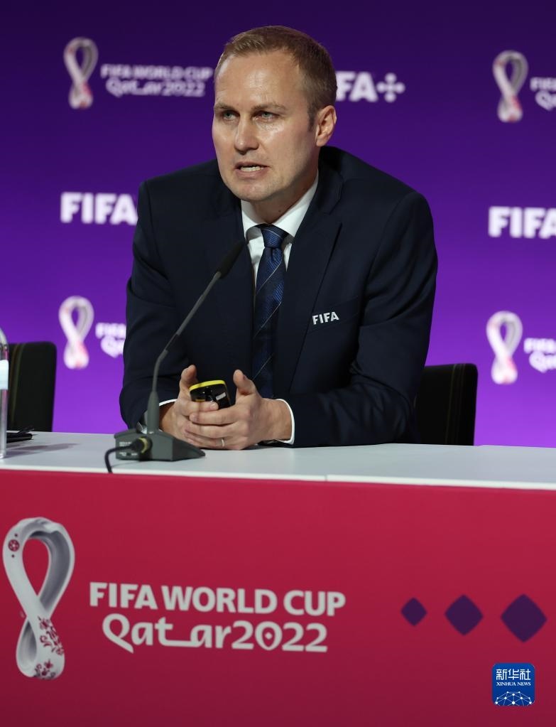 11月18日,國際足聯(lián)主席因凡蒂諾在通氣會(huì)上。新華社記者 賈浩成 攝