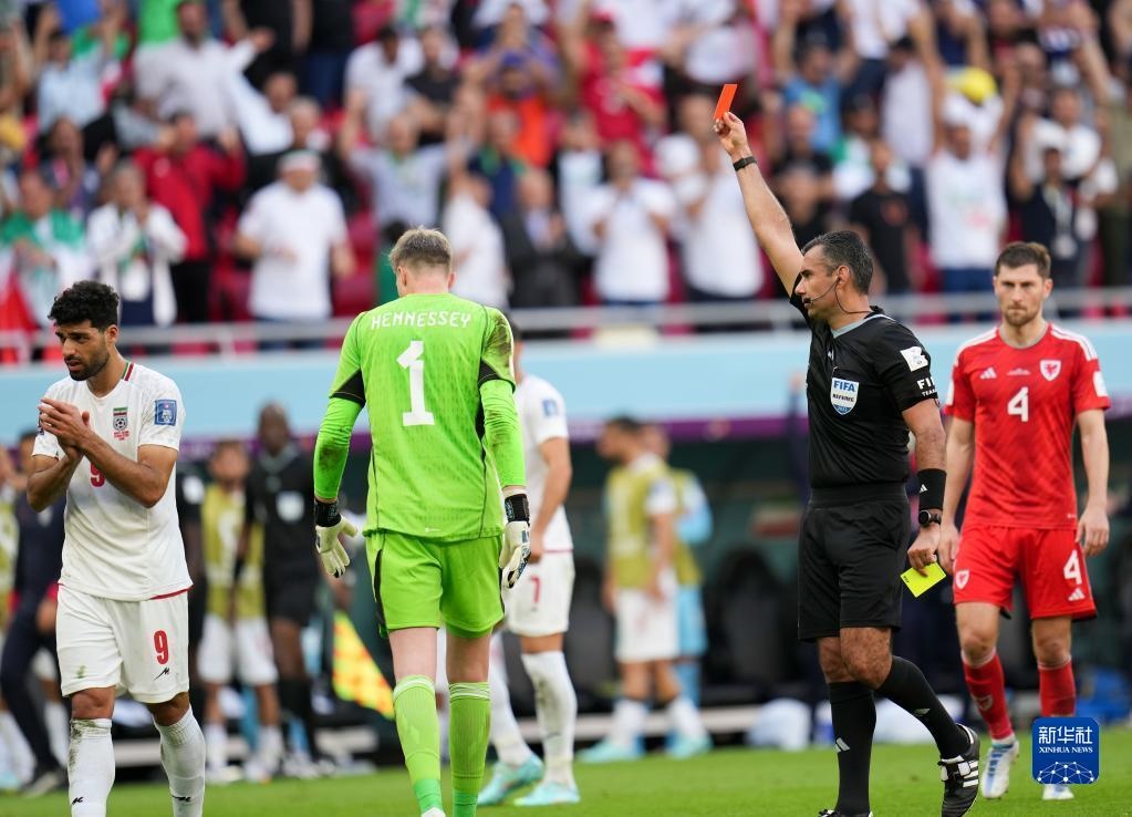 當(dāng)日,在卡塔爾多哈艾哈邁德·本·阿里體育場進(jìn)行的2022卡塔爾世界杯足球賽B組比賽中,伊朗隊以2比0戰(zhàn)勝威爾士隊。