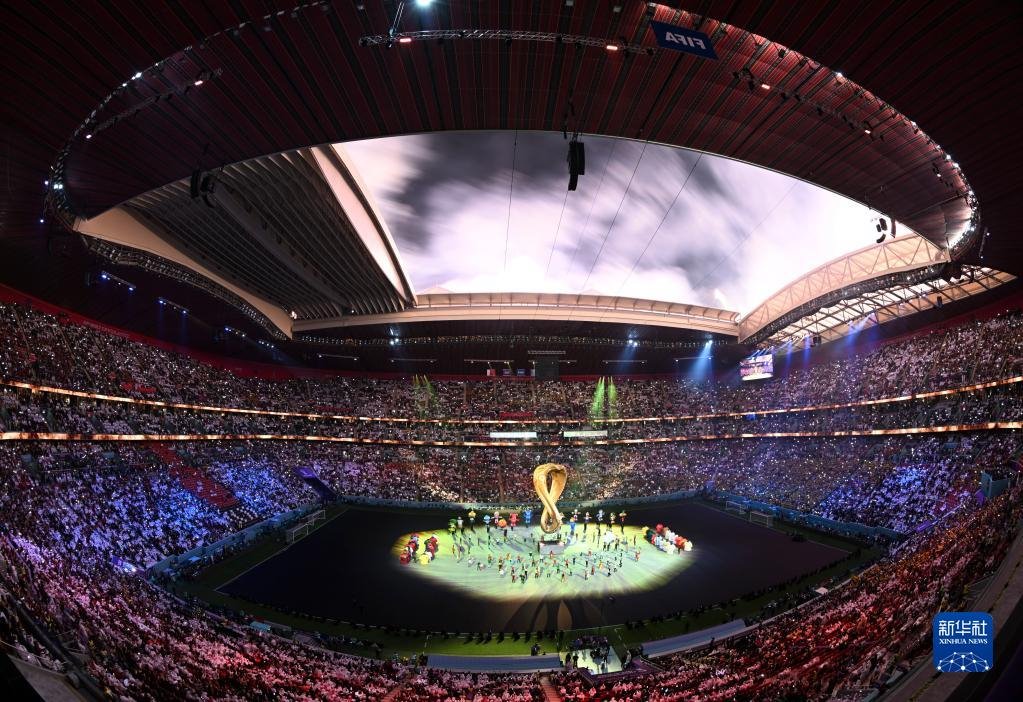 這是2022年11月20日在海灣球場拍攝的卡塔爾世界杯開幕式現(xiàn)場。新華社記者 肖藝九 攝
